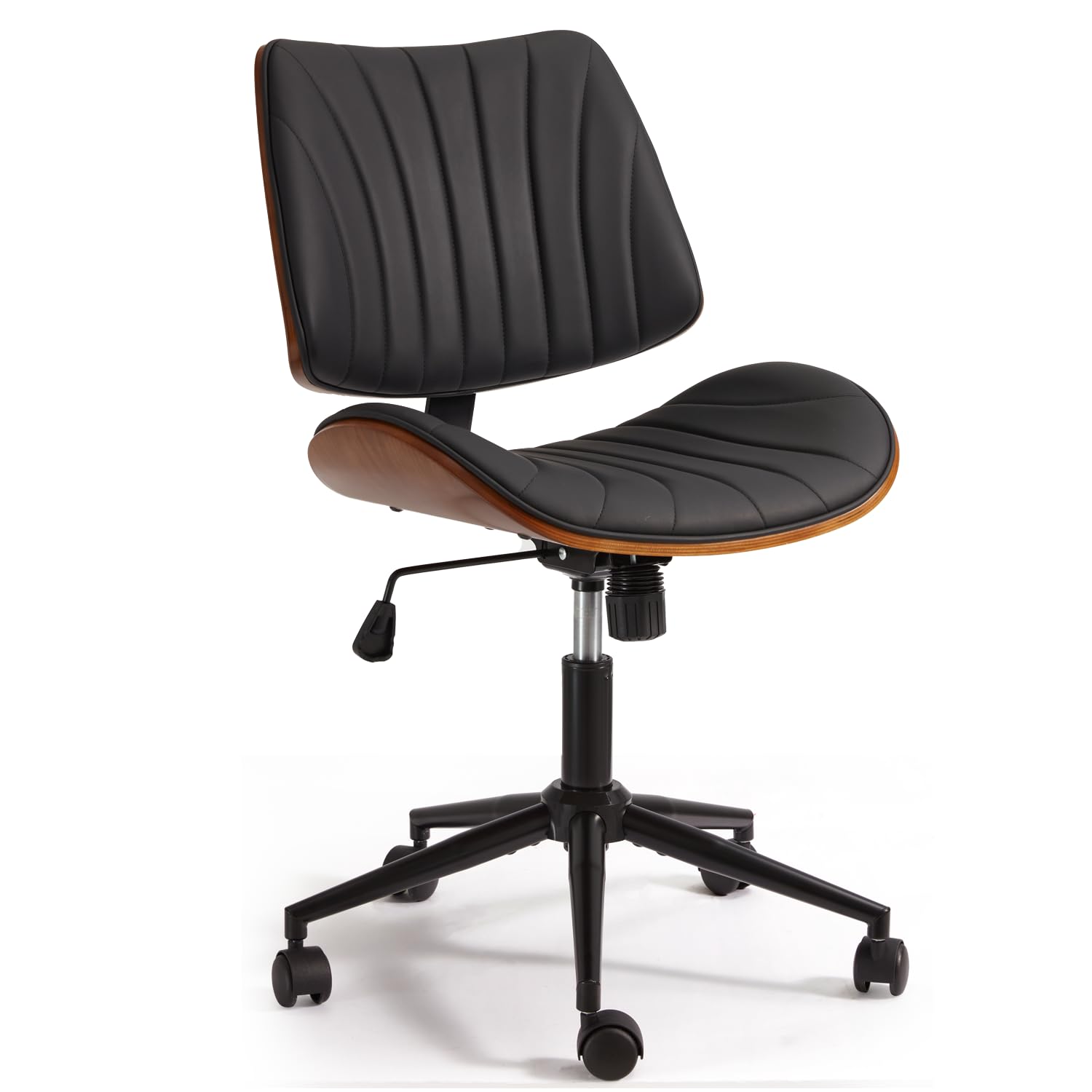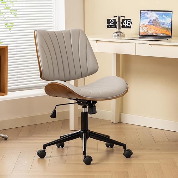 Experience comfort and style with this sleek armless desk chair, designed specifically for compact workspaces. The elegant wooden backrest provides excellent lumbar support while maintaining a minimalist aesthetic that complements any home office or professional setting.