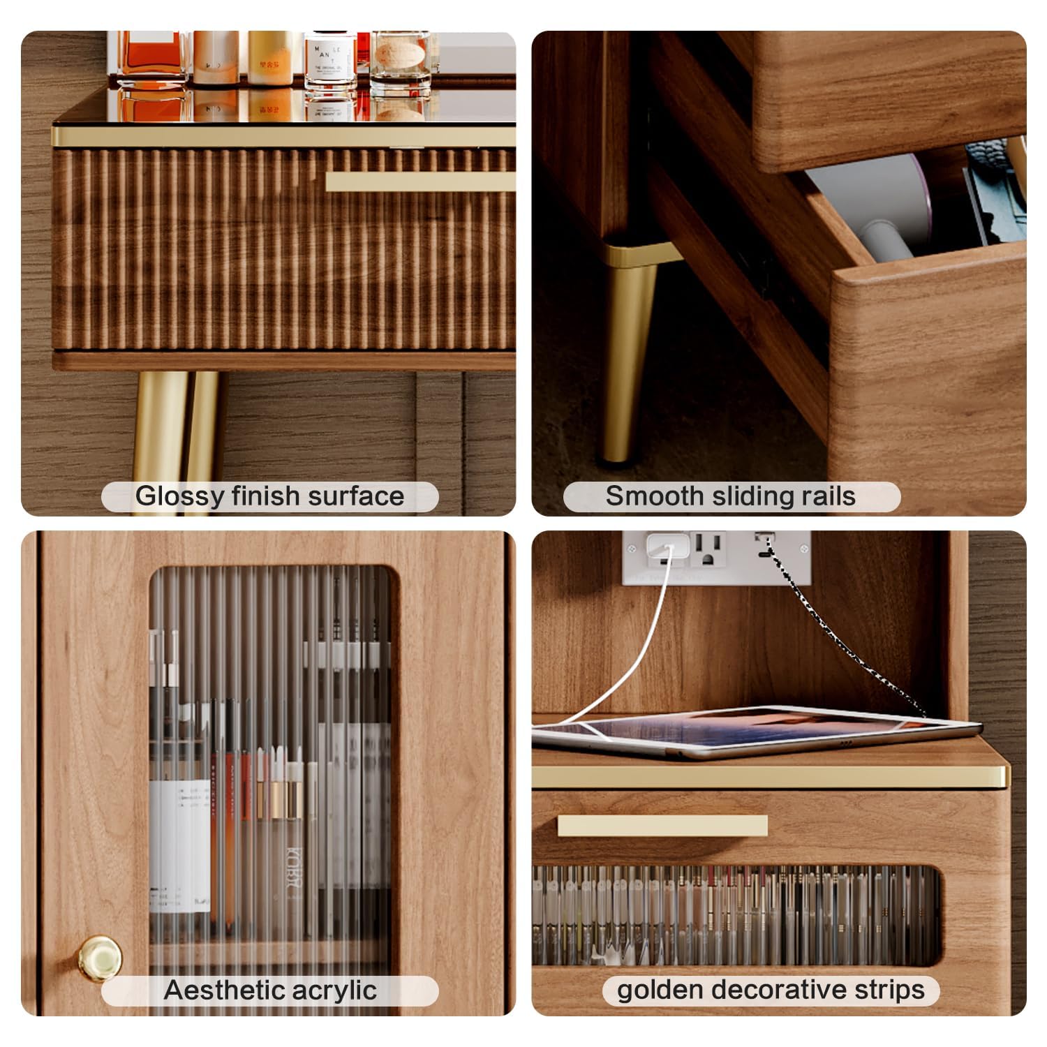 - 【Vanity Table with Charging Station】-This makeup vanity features a charging station, includes 2 standard plug sockets and 2 USB ports, which can be more convenient to connect your hair dryer, curling iron, and it can also charge your phone, tablet or other mobile devices, The unique design is more convenient for you to use.