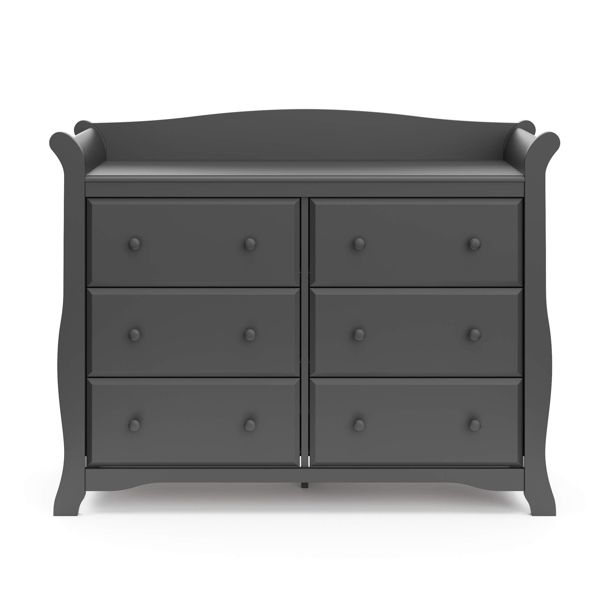 The Avalon 6-Drawer Double Dresser offers a beautiful, functional design with ample storage space for all your child's belongings. This classic sleigh-style dresser combines elegant design with modern function, making it a perfect addition to any nursery or kids bedroom.