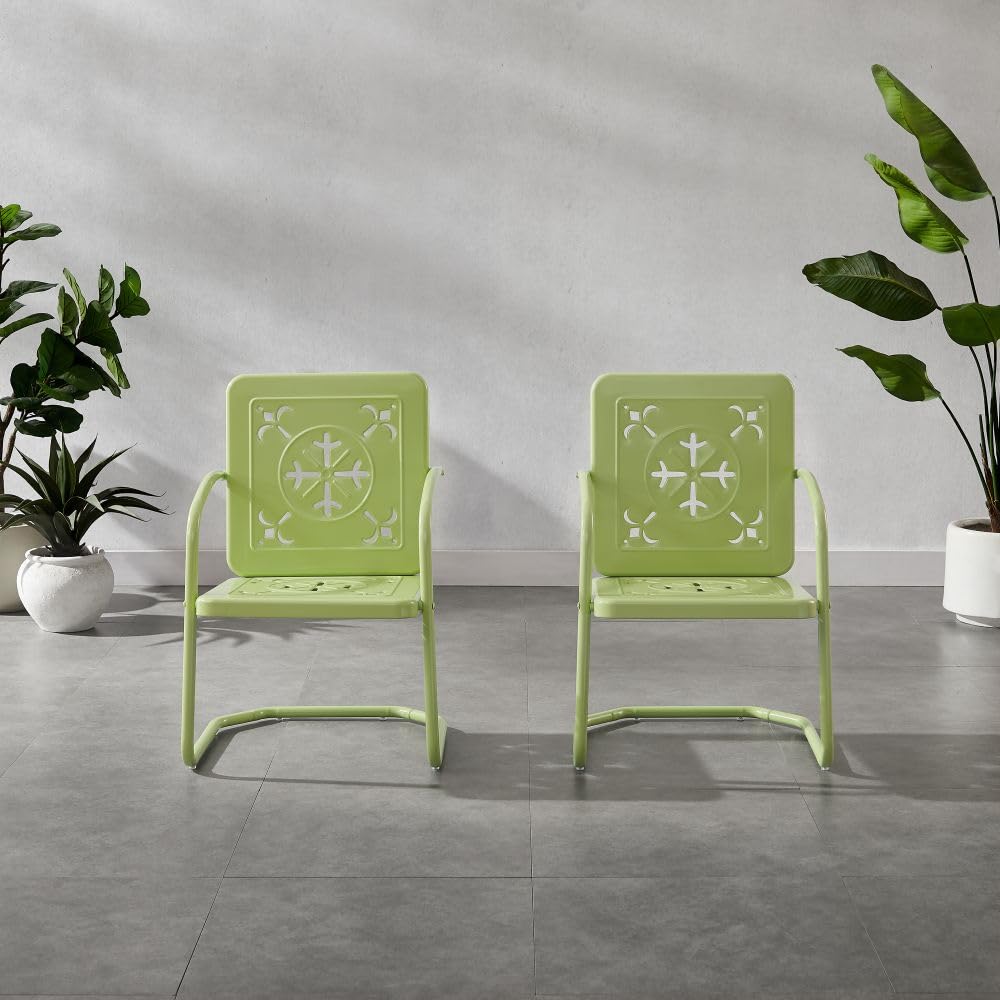 Transform your outdoor space with this vintage-inspired 2-piece metal chair set. Designed for durability and style, these retro patio chairs bring timeless charm to your dining area, porch, or deck.