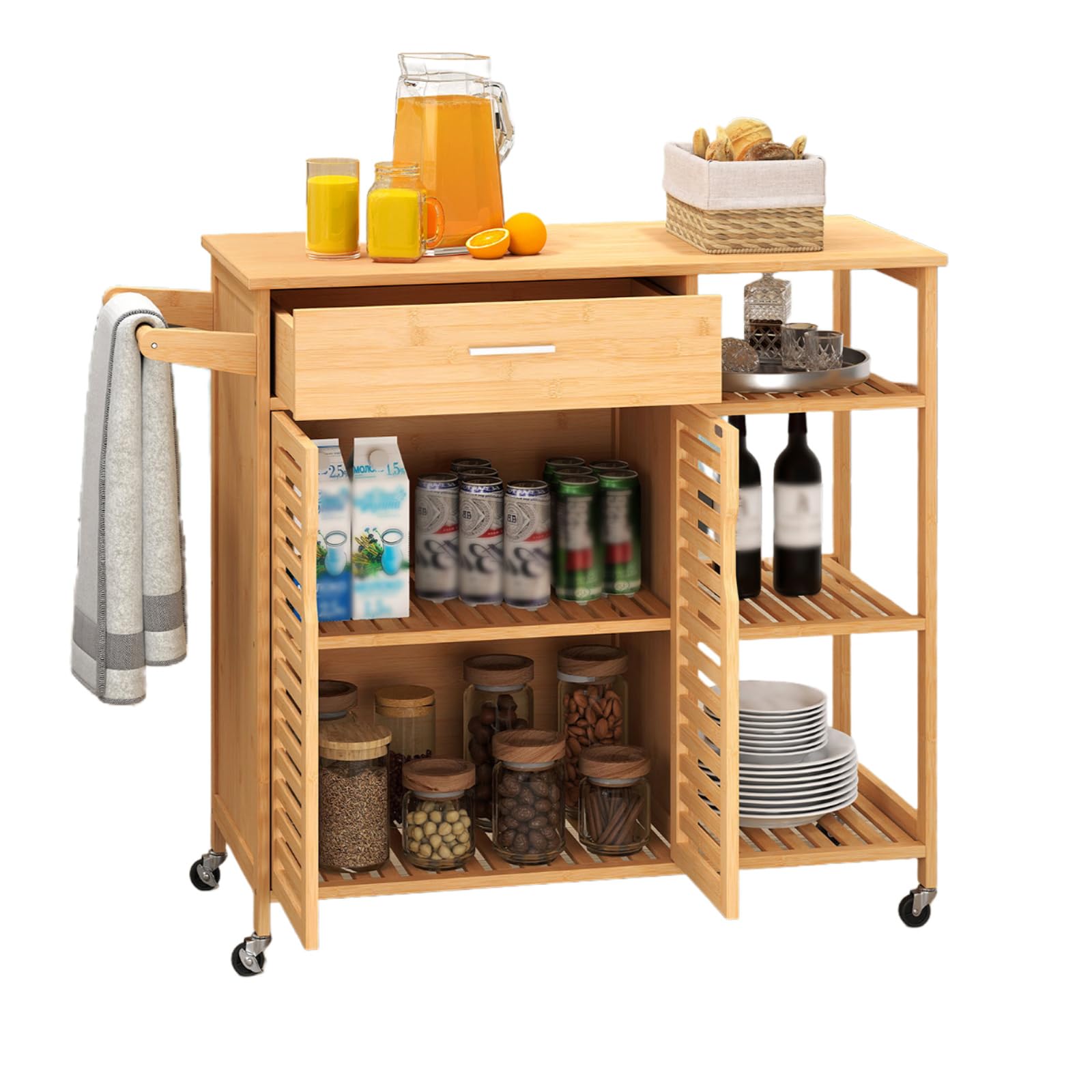Bamboo Kitchen Island Cart with Storage