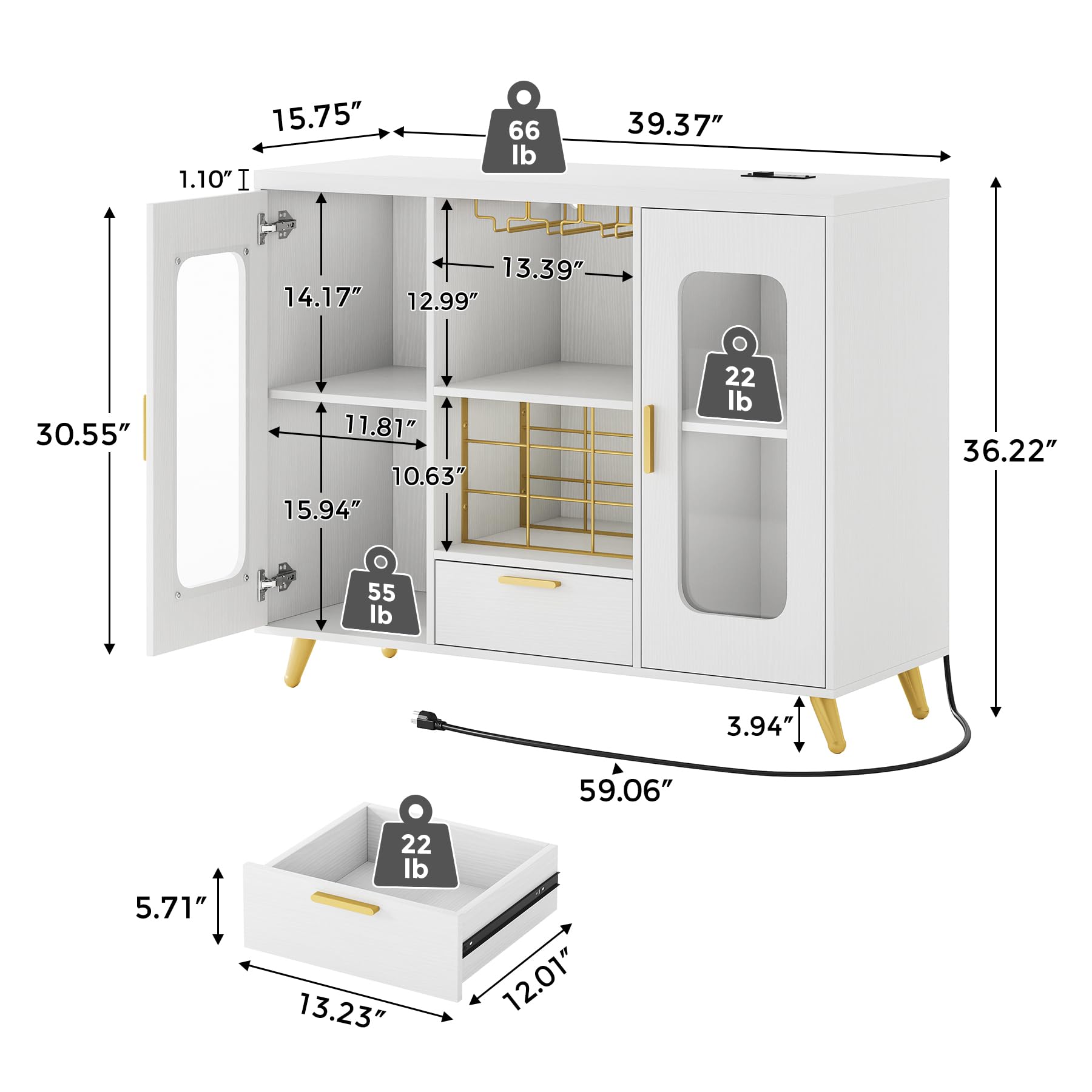 This versatile storage cabinet combines functionality with modern design, featuring built-in power outlets, LED lighting, and ample storage for your home bar, coffee station, or dining essentials.