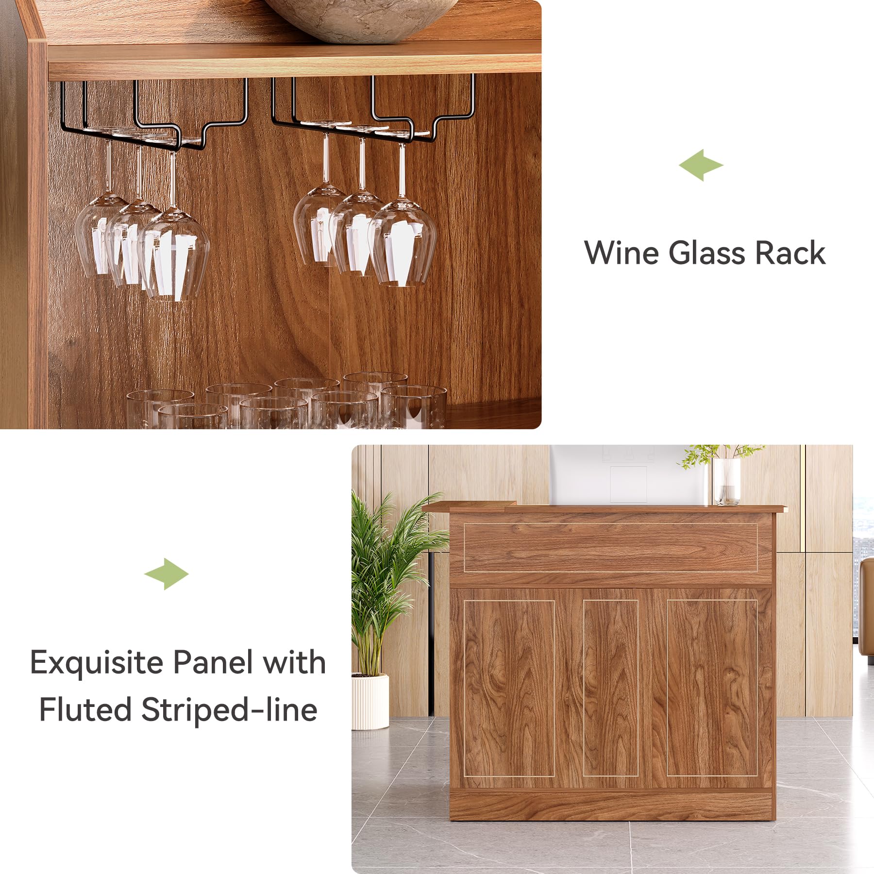 This modern L-shaped bar cabinet combines sleek design with practical functionality, making it an elegant addition to any home. Featuring fluted striped panel details and a freestanding design, this versatile piece works beautifully in living rooms, dining rooms, or spacious hallways.
