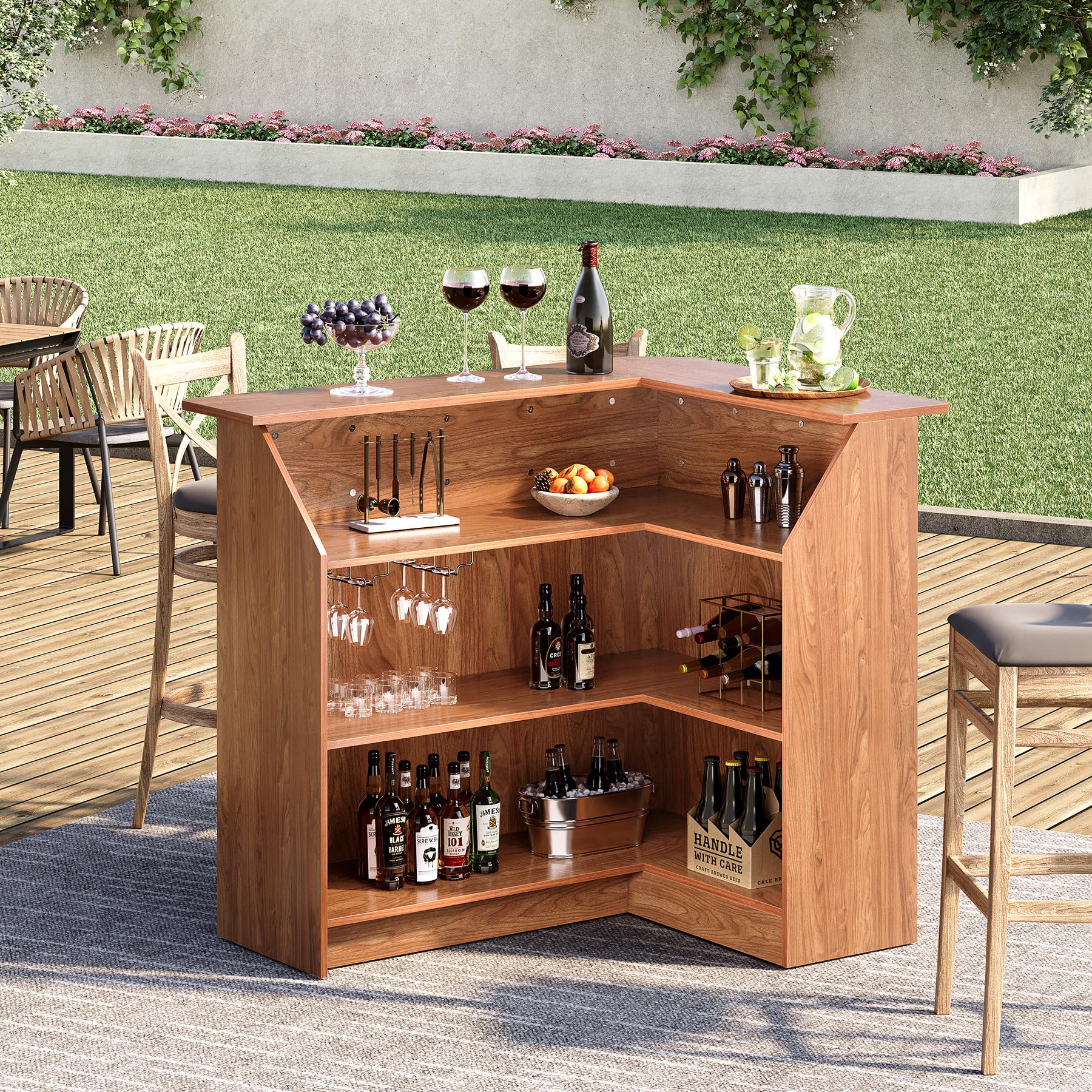 Perfect for home bars in dining rooms, kitchens, and living rooms. The corner-friendly L-shaped design maximizes space while providing ample storage for your beverage collection and glassware.