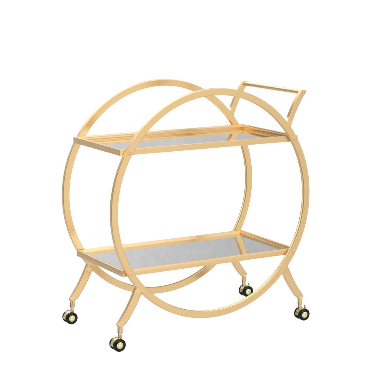 Bar Cart with 2 Mirrored Shelves - Gold Metal Rolling Serving Cart