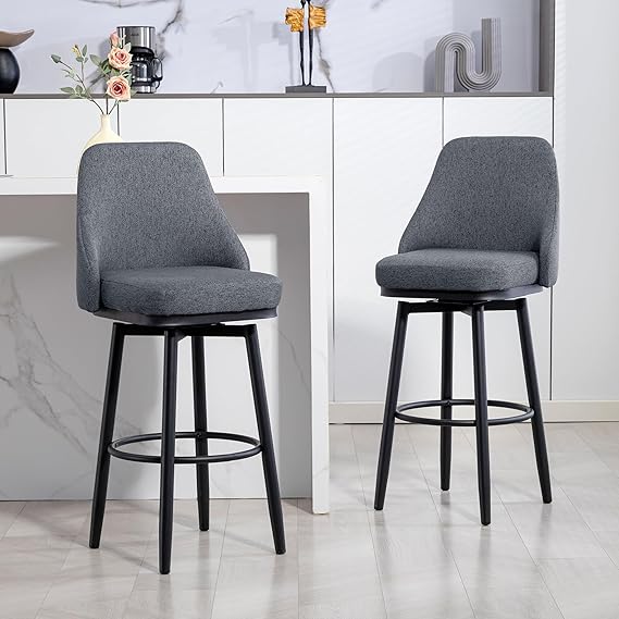 Elevate your kitchen island or home bar with this set of two modern bar height stools. Designed for comfort and style, these swivel bar stools feature soft foam padding with breathable linen fabric upholstery in cream white, creating an inviting seating experience for family and friends.