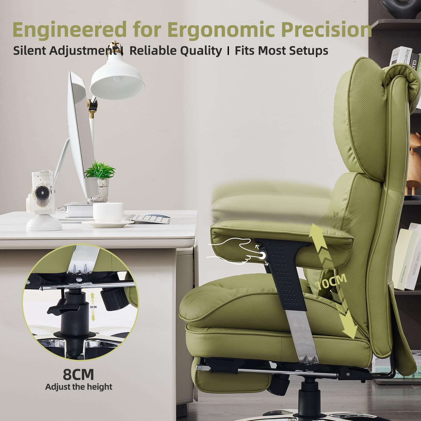 - Adjustable Armrests: Customize armrest height to match your desk and sitting position, with soft padding to relieve shoulder and neck strain