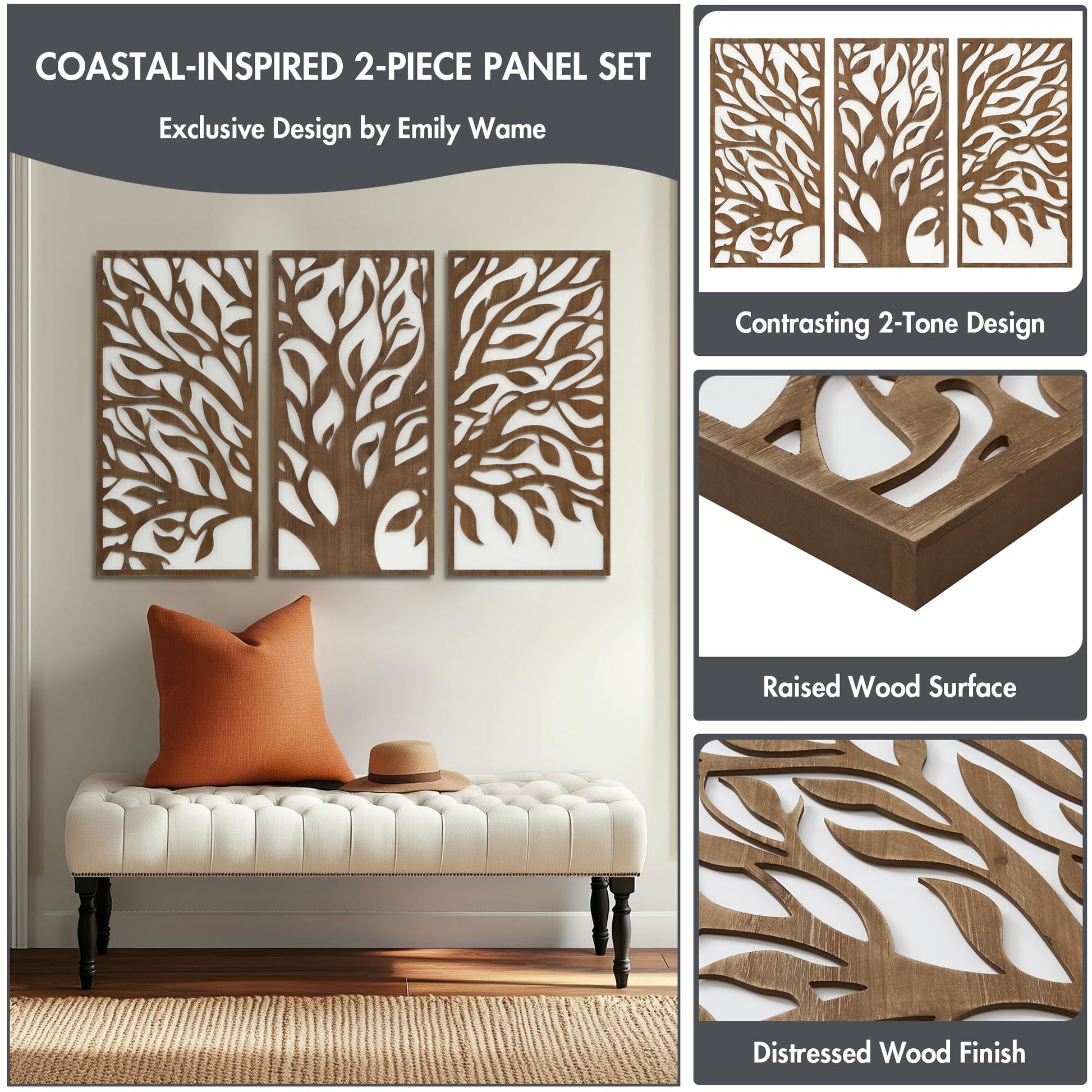 - 3-piece wood panel set for versatile arrangement