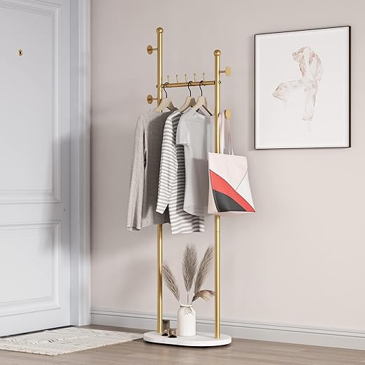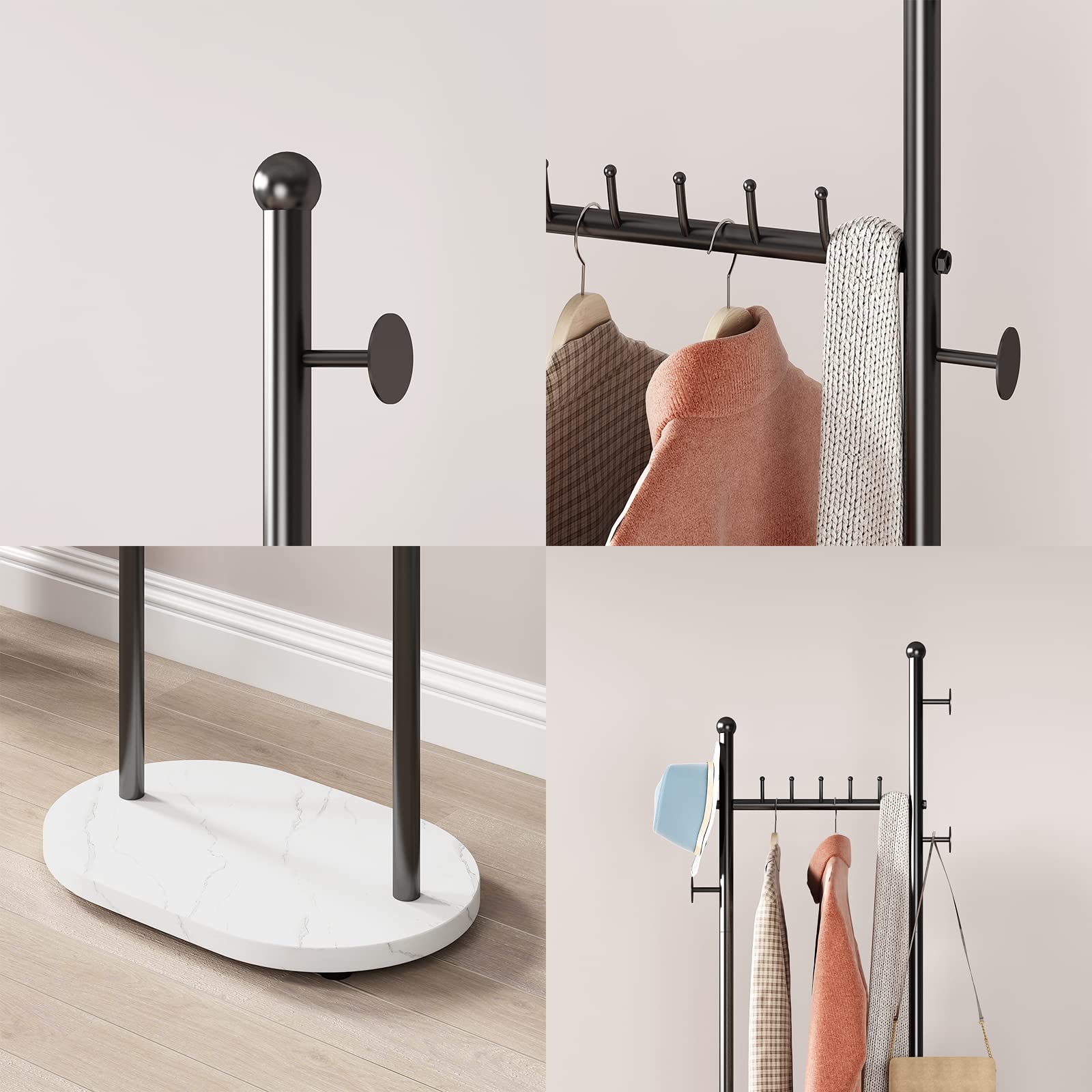 Elevate your space with this modern freestanding clothing rack featuring a sophisticated marble base and premium metal construction. Perfect for organizing coats, hats, bags, and scarves in any room.