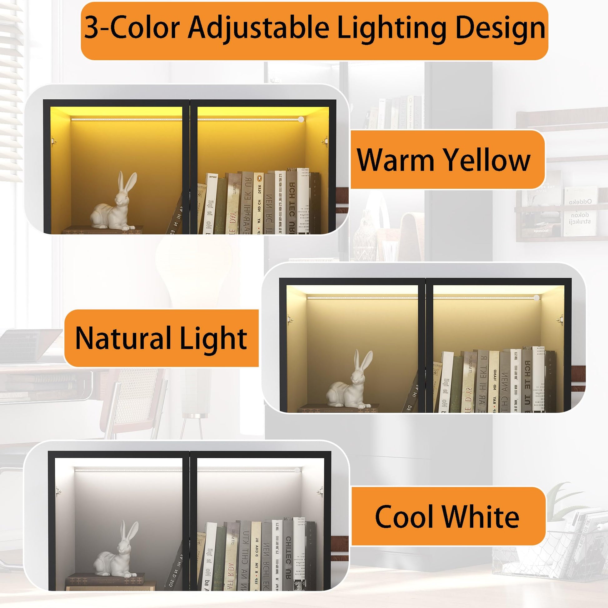 - Adjustable three-color LED lighting (Cool White/Natural/Warm Yellow) to set the perfect ambiance