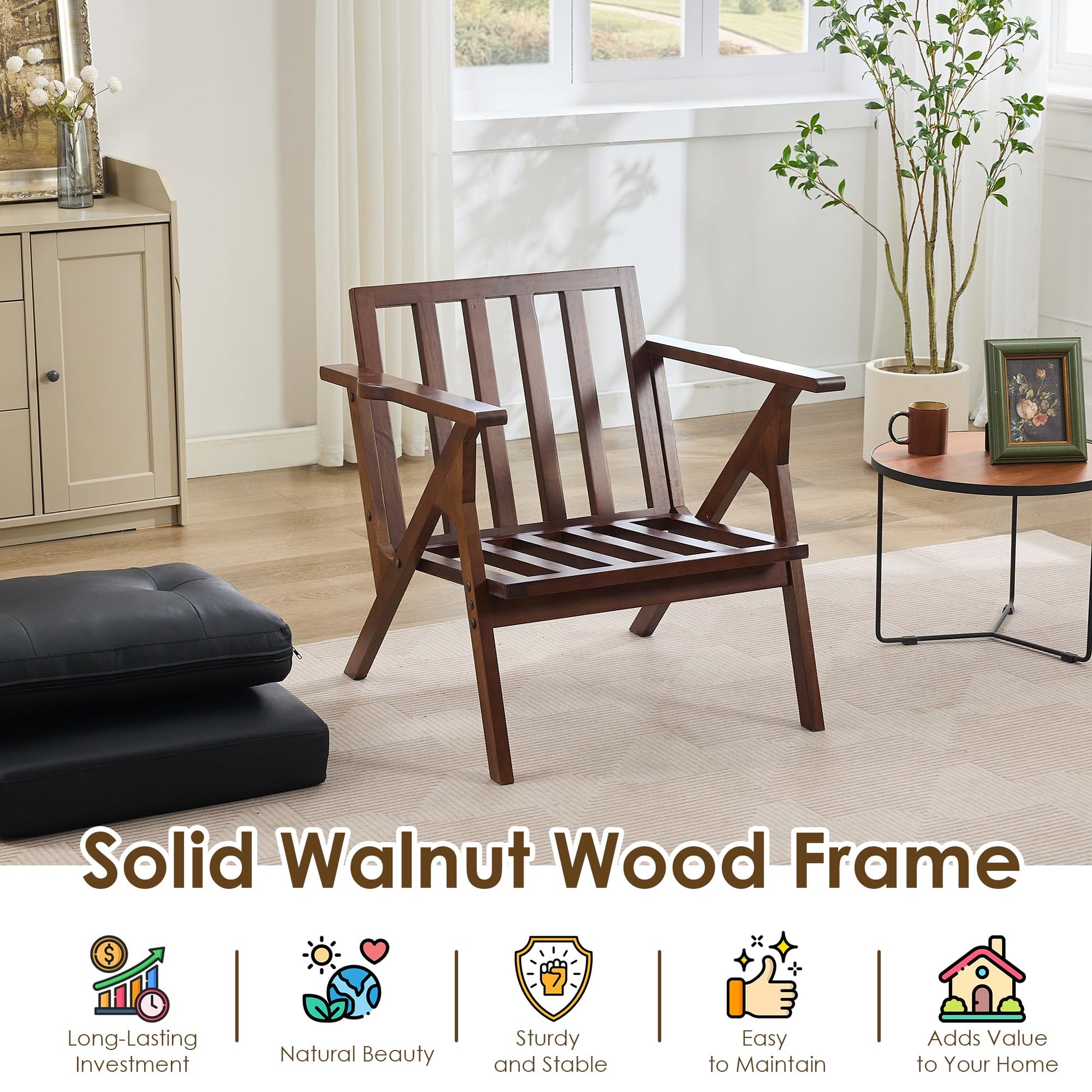 - Solid wooden armrests for added elegance