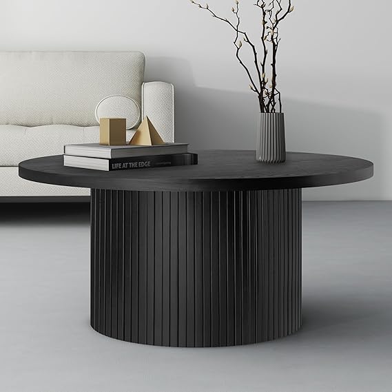 Elevate your living space with this modern black round coffee table. Featuring a contemporary minimalist drum design, this circle coffee table combines sleek aesthetics with exceptional functionality. The heavy-duty base ensures stability and durability, making it perfect for everyday use in your living room.