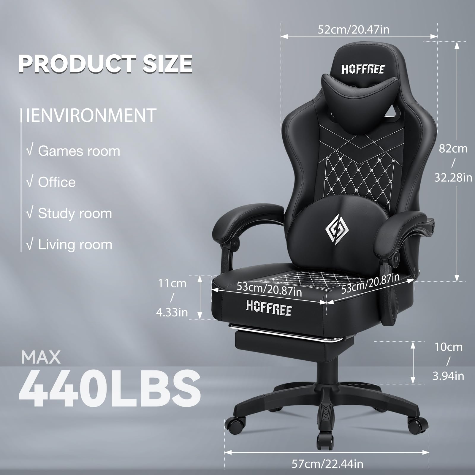 - USB-Powered Massage Function: Two-point massager with memory foam lumbar pillow provides targeted support and comfort during gaming or work sessions.