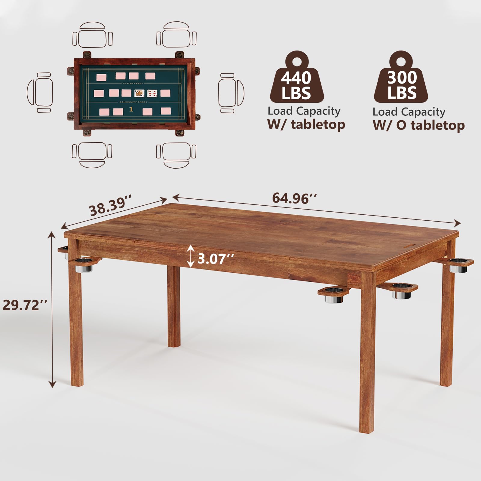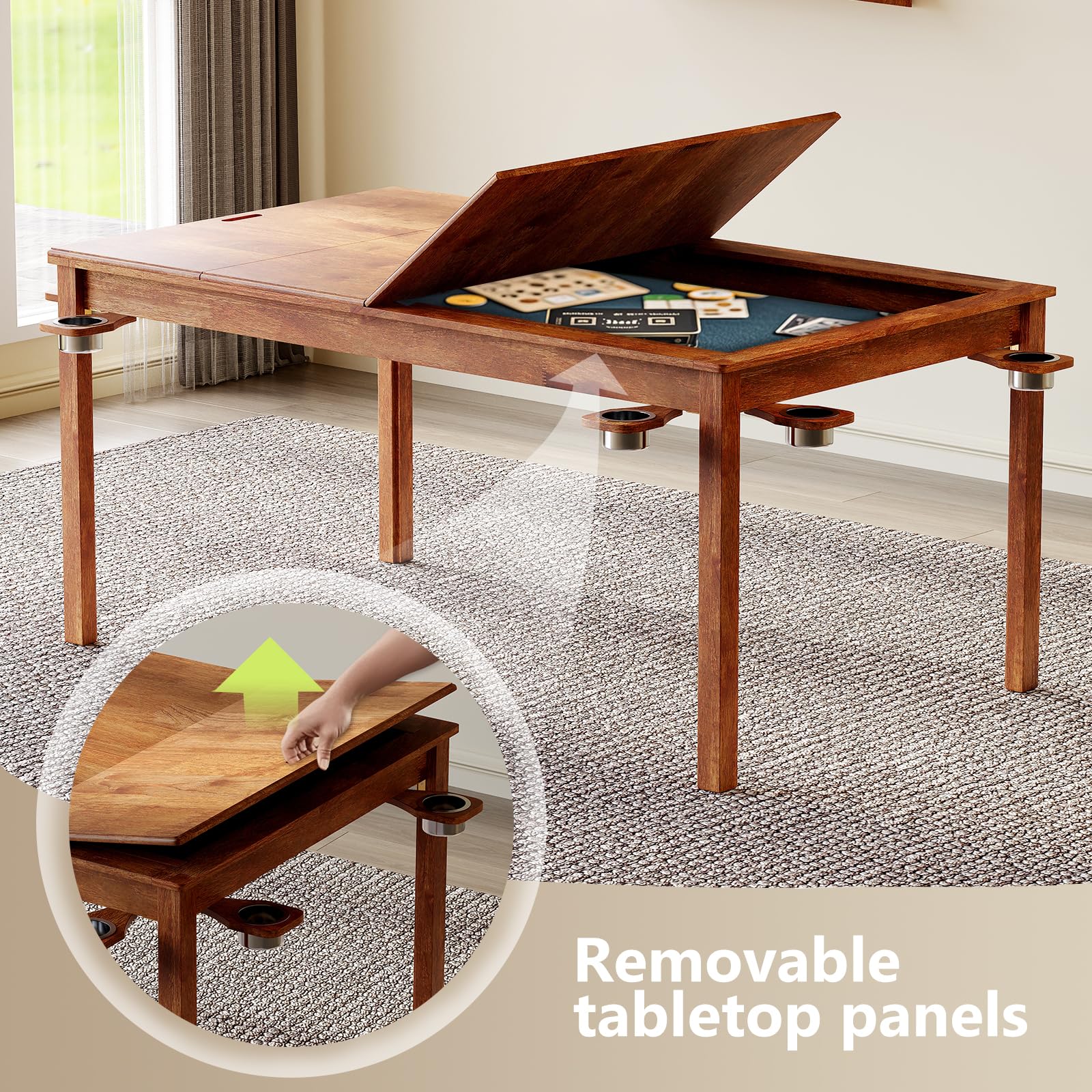 Board Game Table with Removable Top - Solid Wood Dining and Gaming Table