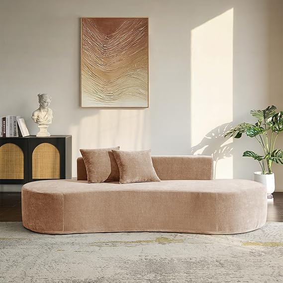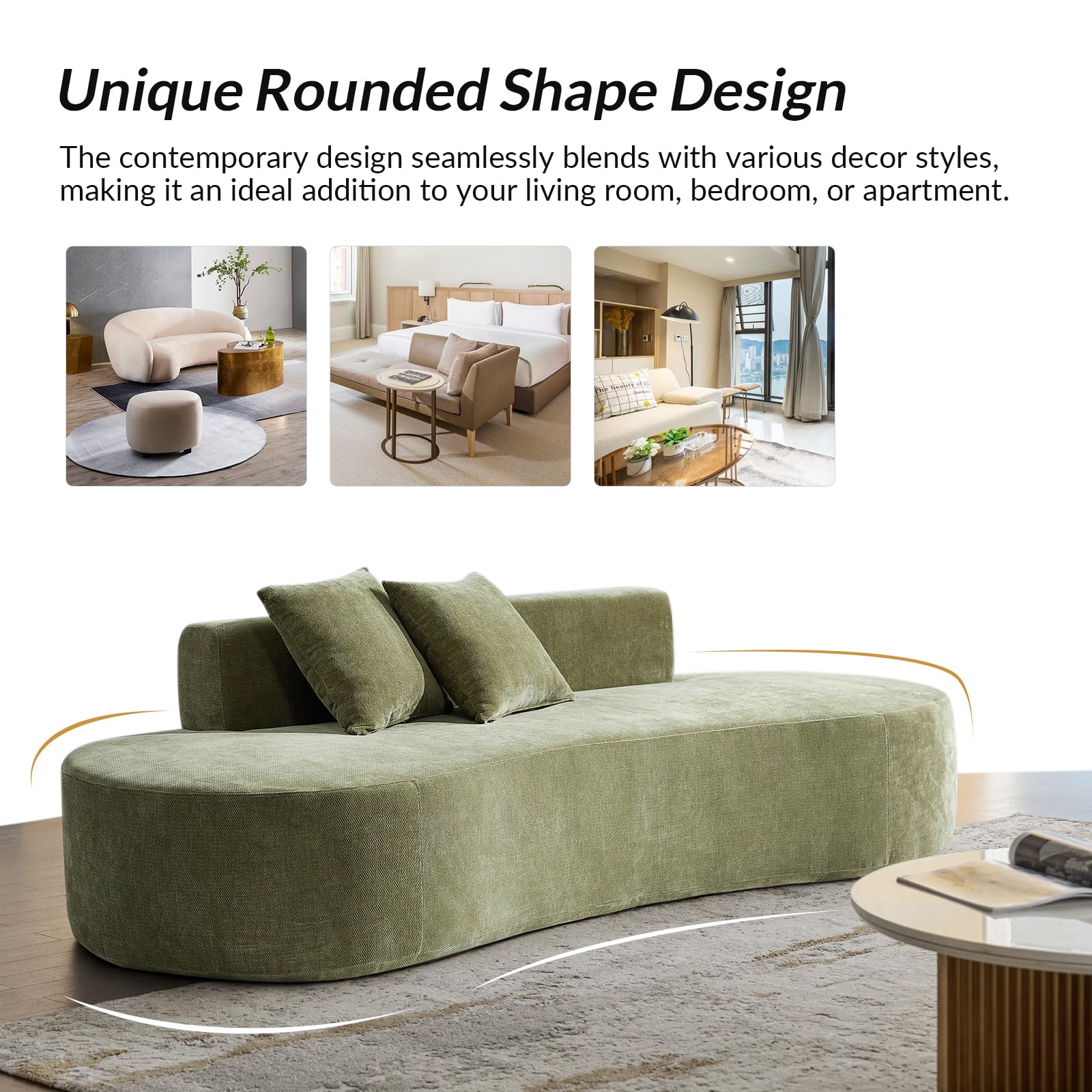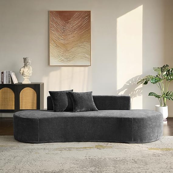 This modern boneless sectional sofa features a comfortable all-foam design with a half-moon shape and deep seating. The 3-seater compressed foam construction provides plush, supportive comfort for lounging or entertaining. Includes 2 decorative pillows.