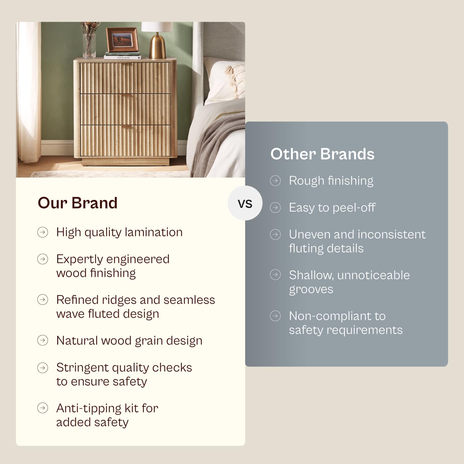 - 3 deep, smooth-closing drawers for ample storage