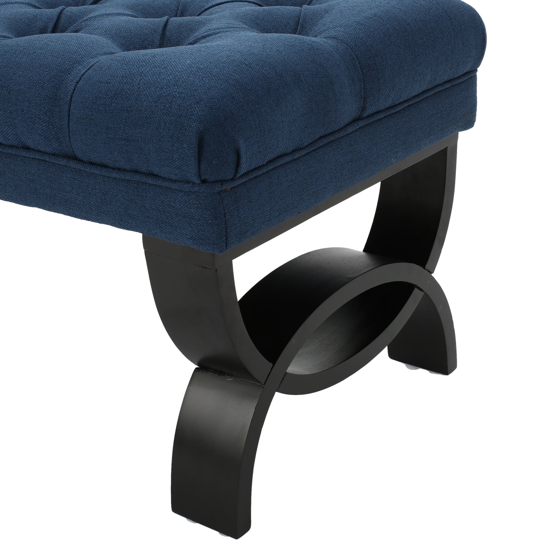 Button-Tufted Ottoman Bench Dark Blue