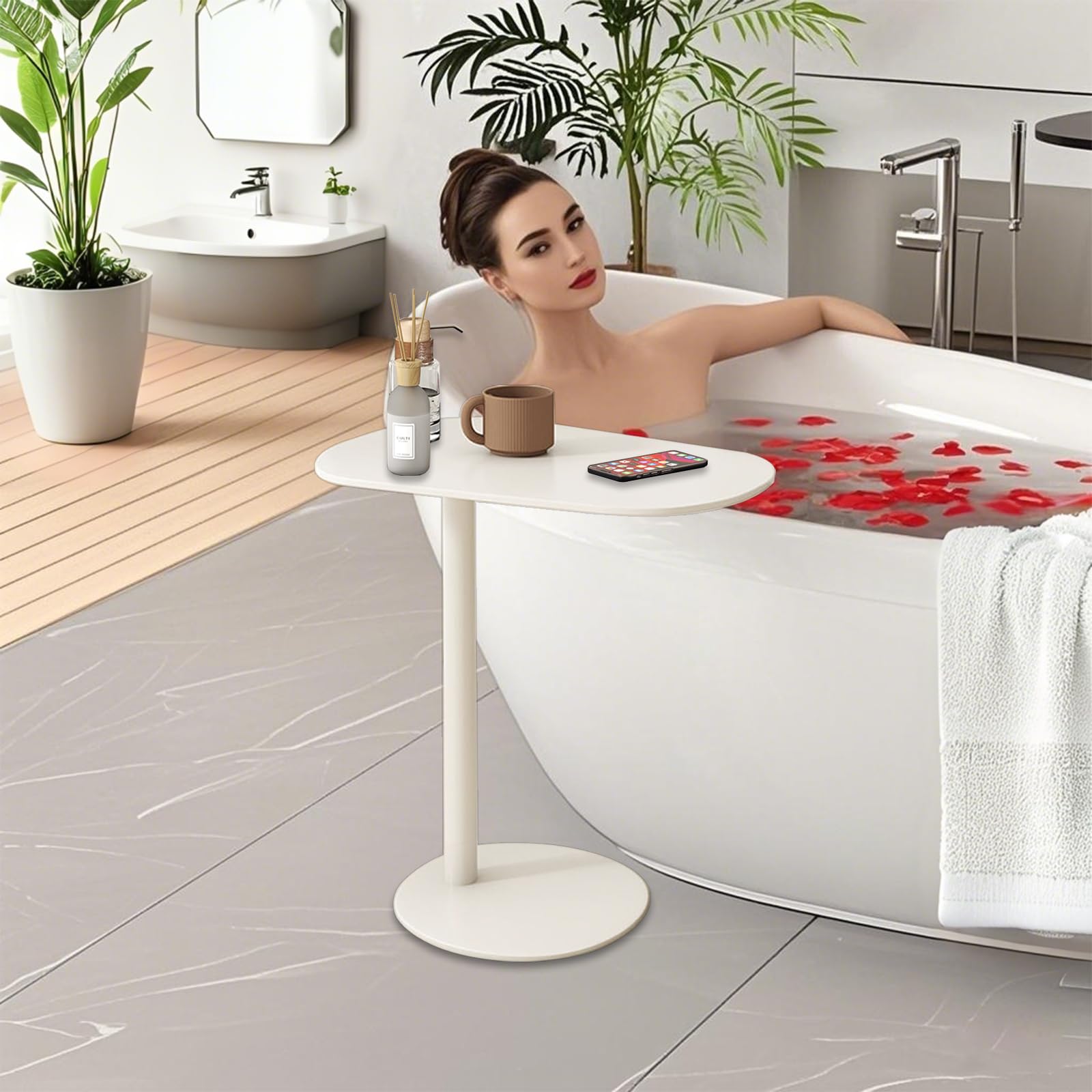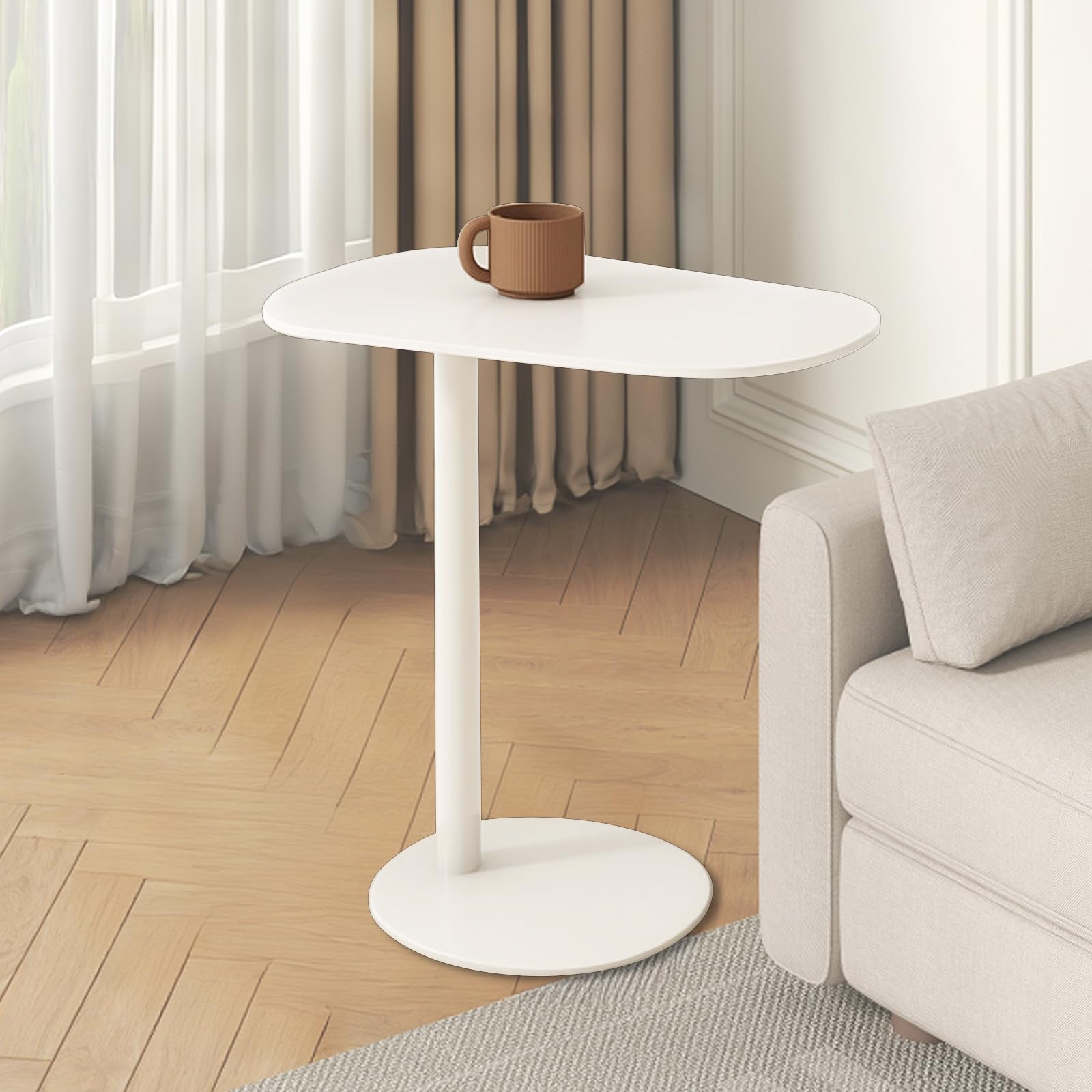 This modern C-shaped side table features a compact design that slides effortlessly under your sofa, bed, or chair. The ergonomic height of 24.8 inches provides comfortable access whether you're relaxing on the couch or working from bed.