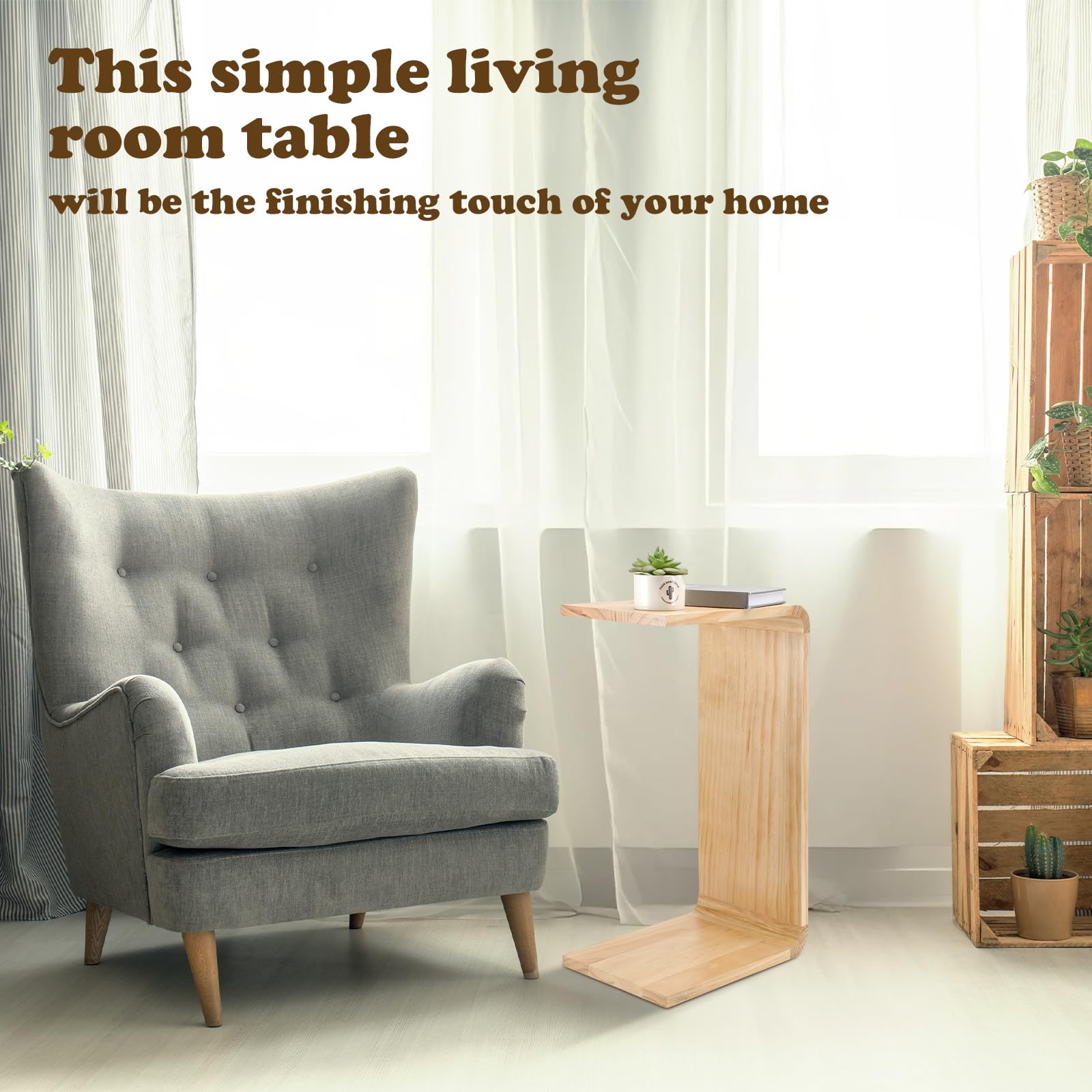 This versatile C-shaped side table is crafted from solid wood, offering both functionality and timeless style for your living space. Its compact design makes it perfect for small areas while providing a practical surface for coffee, snacks, or everyday essentials.