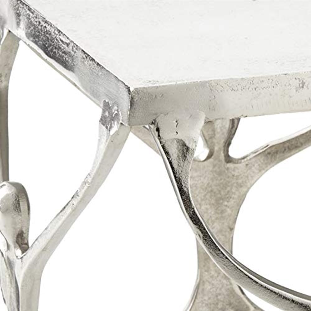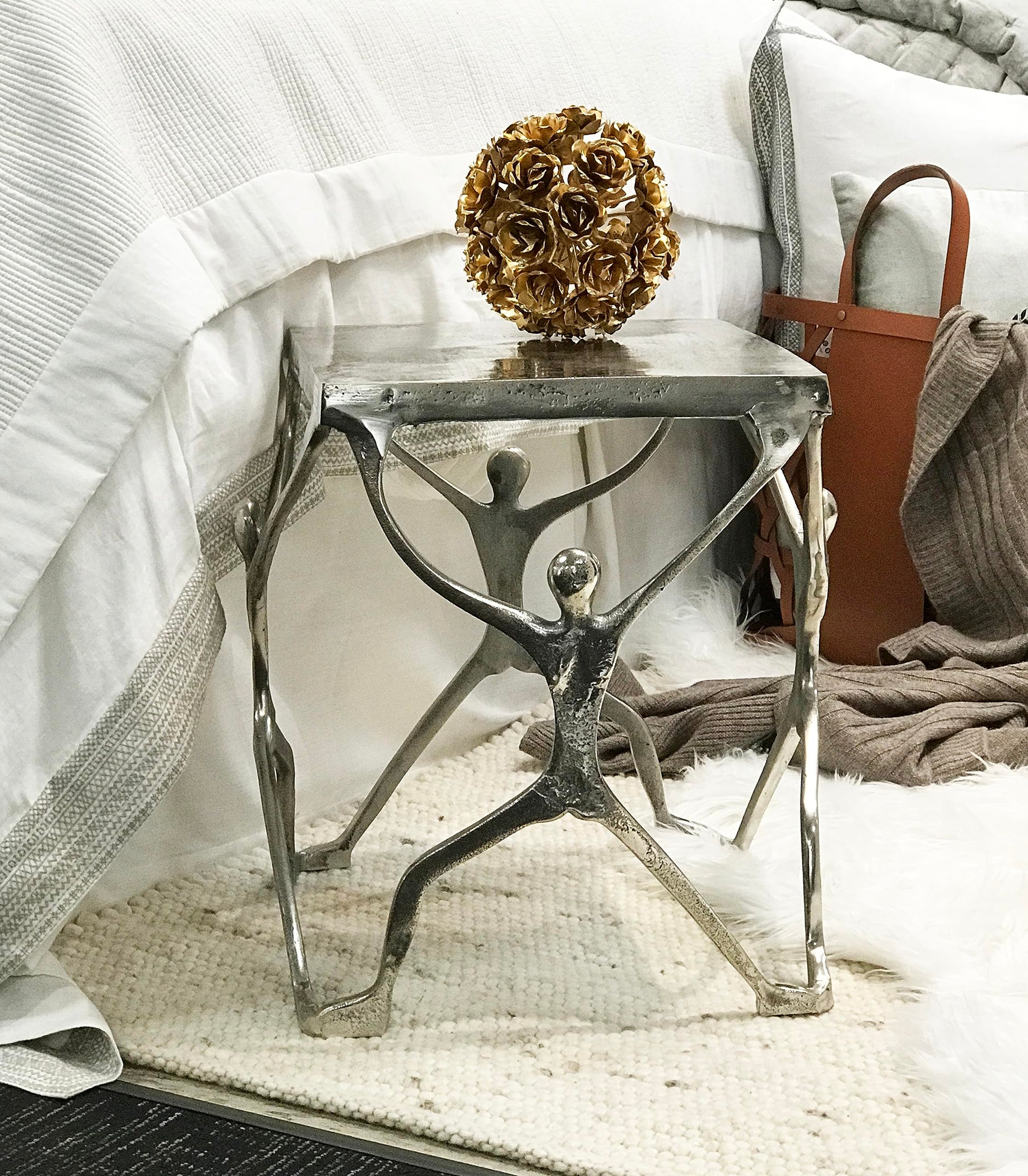 A striking aluminum accent table featuring a unique man figure design. This modern art piece serves as both functional furniture and sculptural statement, perfect for contemporary living spaces.