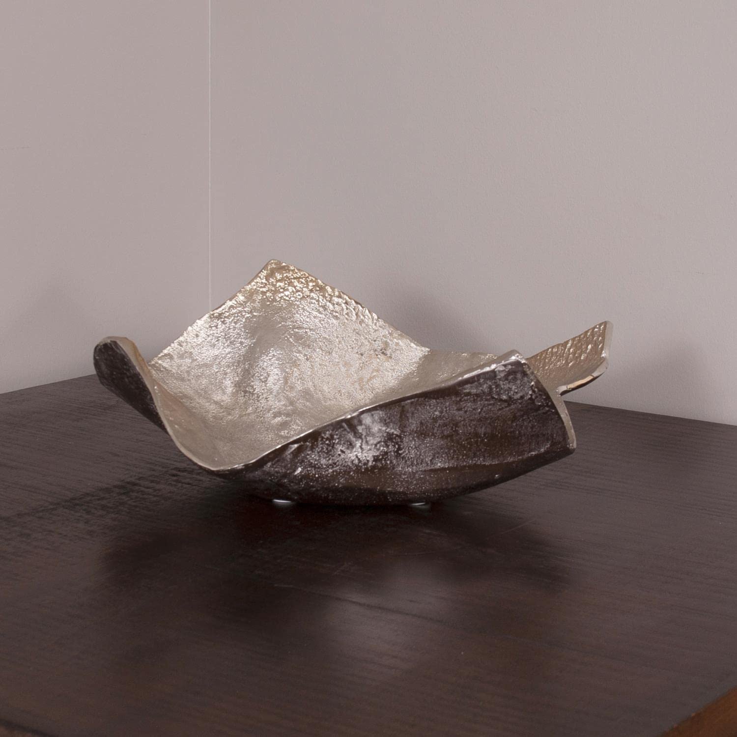 Perfect as a centerpiece for your coffee table, entryway console, or living room accent table. The lustrous champagne silver finish catches light beautifully, while the hand-hammered texture creates visual depth and artisanal appeal.