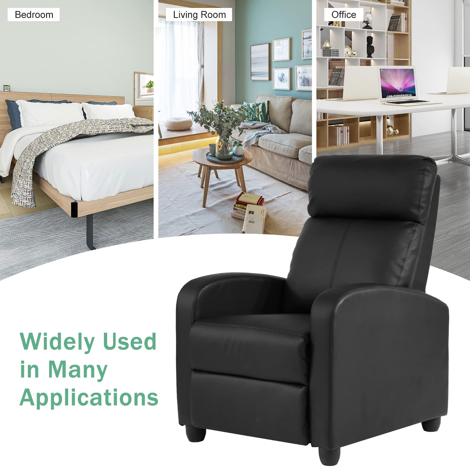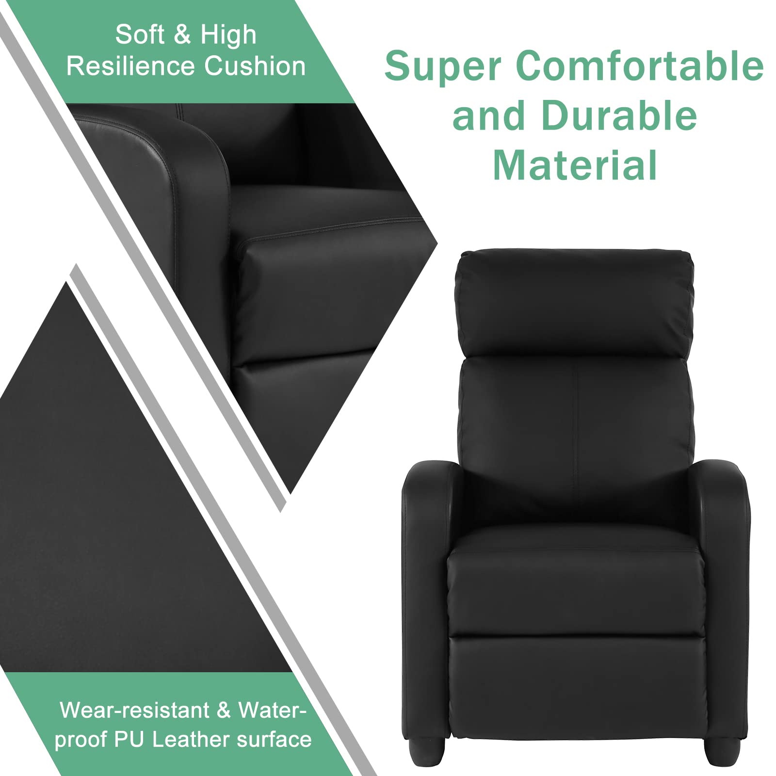- 🎲【COMFORTABLE UPHOLSTERY】 The appearance of this single sofa recliner is modern and elegant. The puffy backrest and seat cushion will give you more comfort, as if the whole body is wrapped in the recliner. The skin-friendly fabric offers a stylish design that serves as an extra touch to any room.