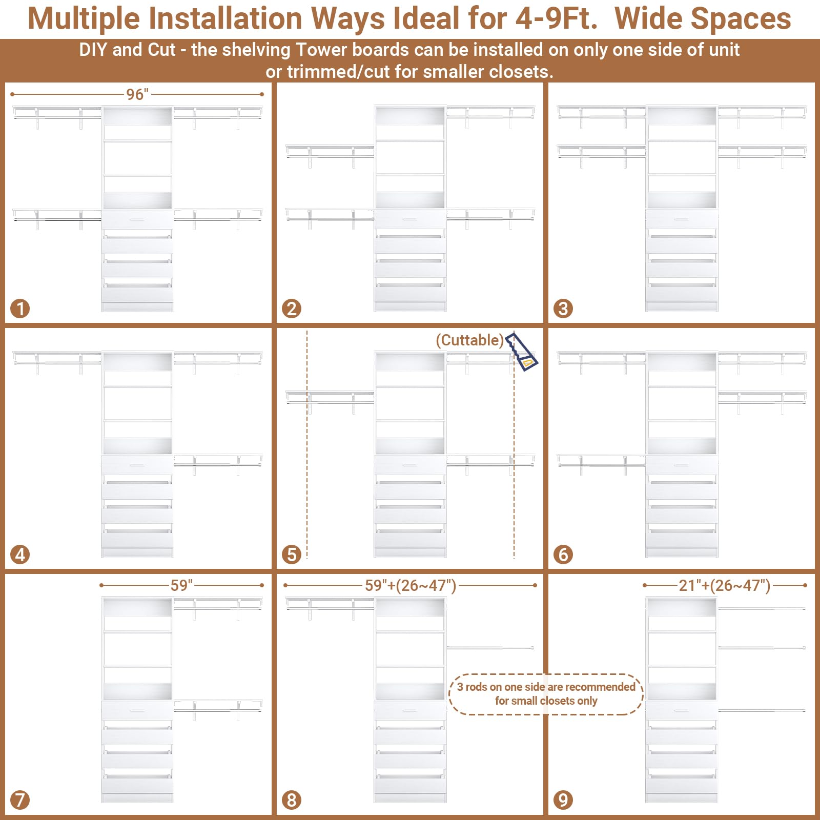 - Adjustable Design: 4 expandable hanging rods (26.4" to 47") accommodate spaces 4ft to 9ft wide with flexible installation options