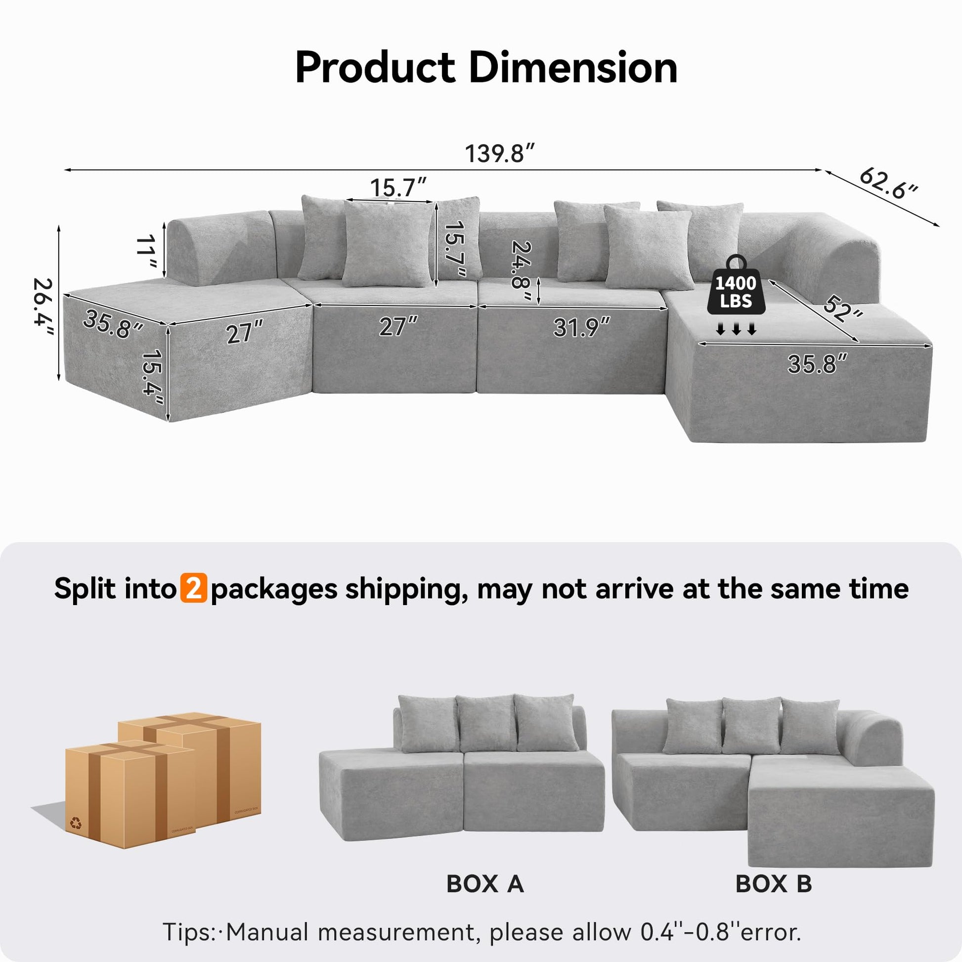 - Artistic Modular Design: Features an irregular modular shape with built-in L-shape chaise lounge, adding modern aesthetic appeal to any living space.