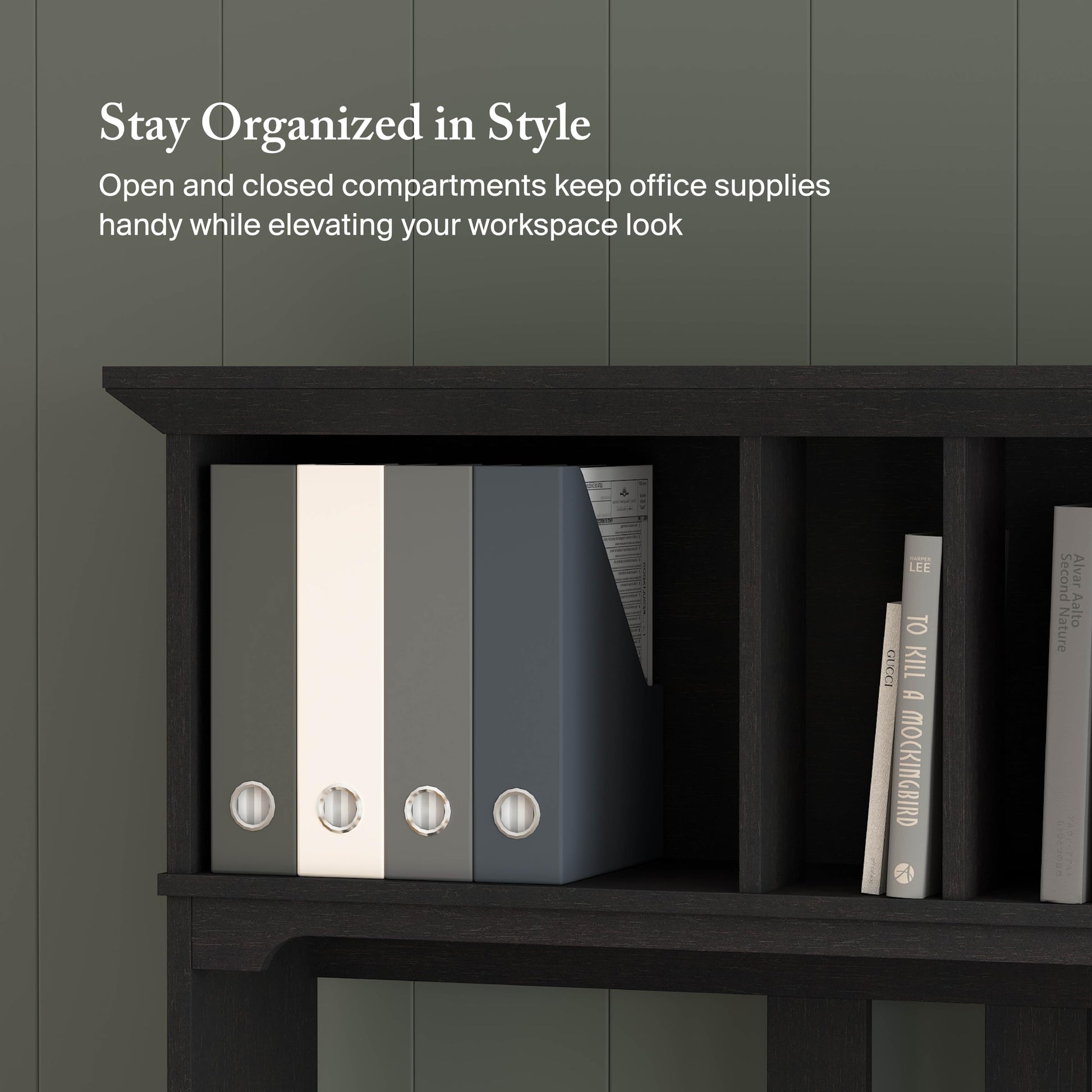 Transform your workspace with this comprehensive computer desk featuring an integrated hutch, multiple storage options, and a convenient pullout keyboard tray. Designed for modern home offices, this study table combines functionality with sleek vintage black styling.