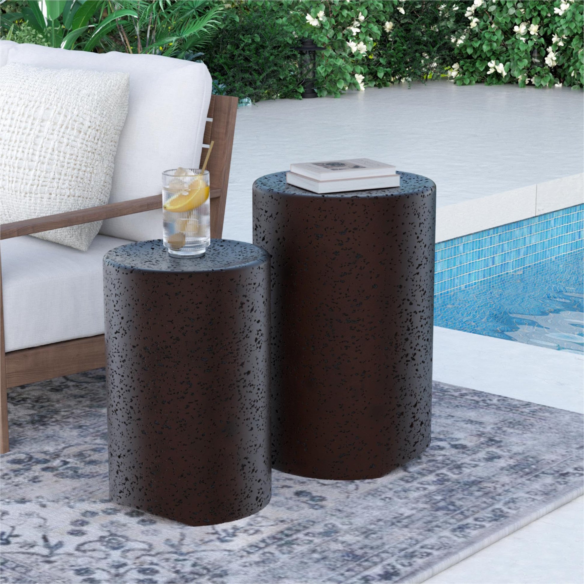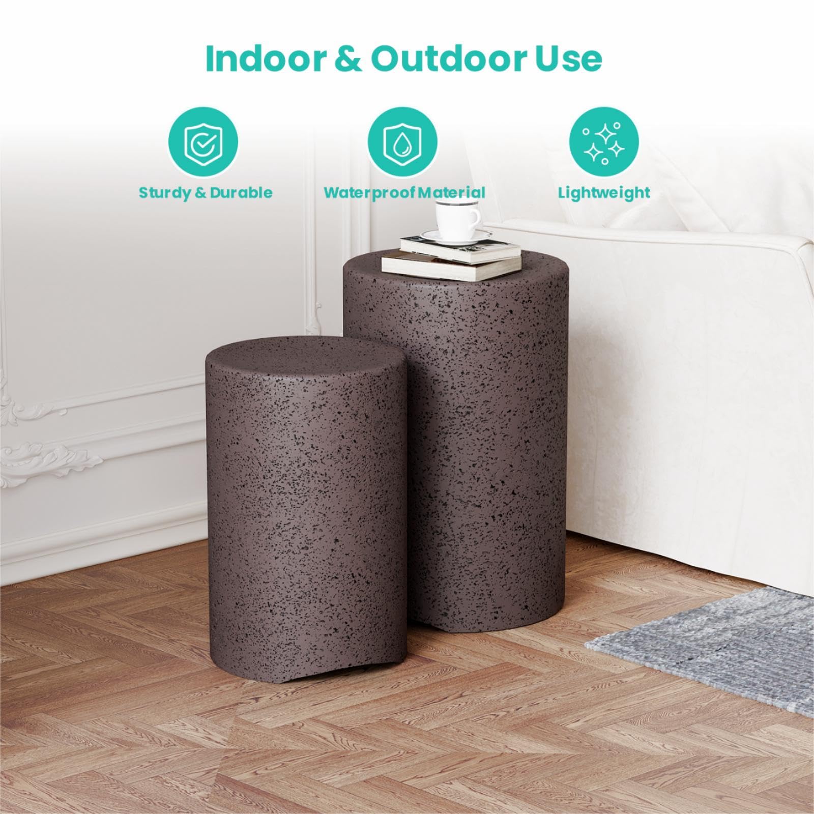 Concrete Side Table Set of 2 Round Nesting Outdoor End Tables