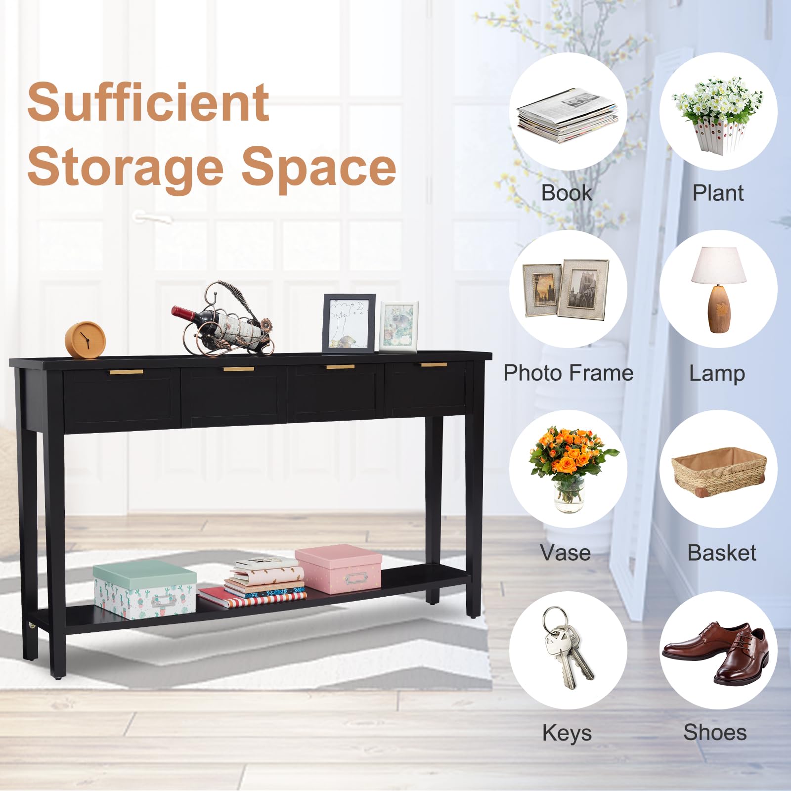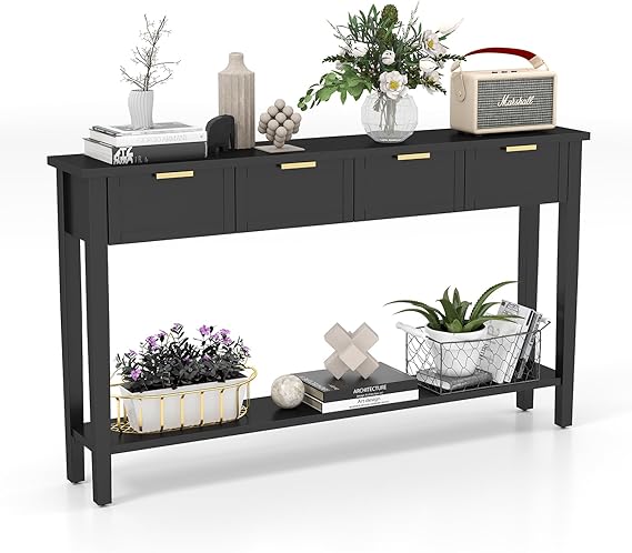 Console Table with 4 Drawers and Shelf - 60 Inch Long Entryway Hall Table