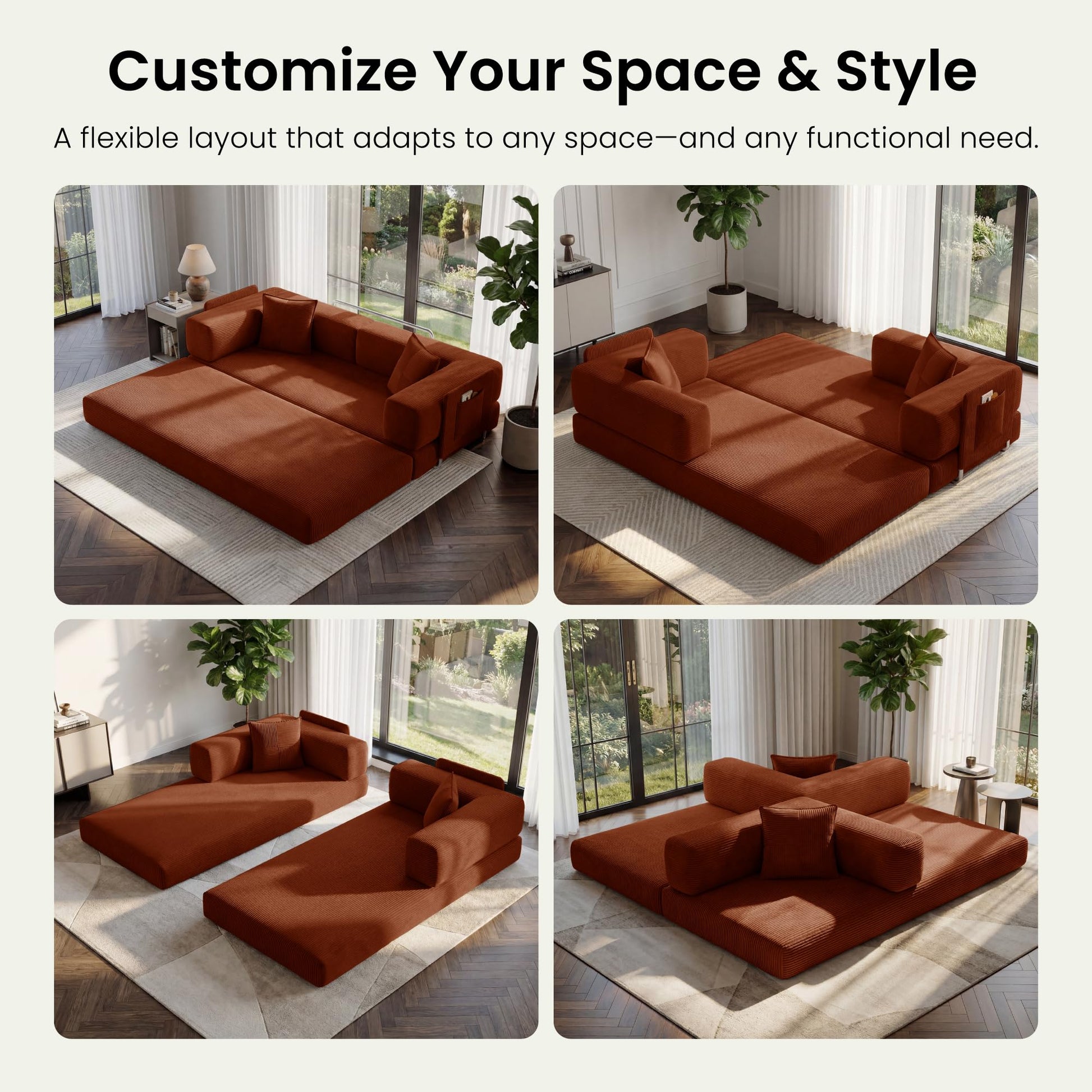 - 4-in-1 Convertible Design: Transforms between sofa, lounger, chaise, and bed modes for ultimate versatility