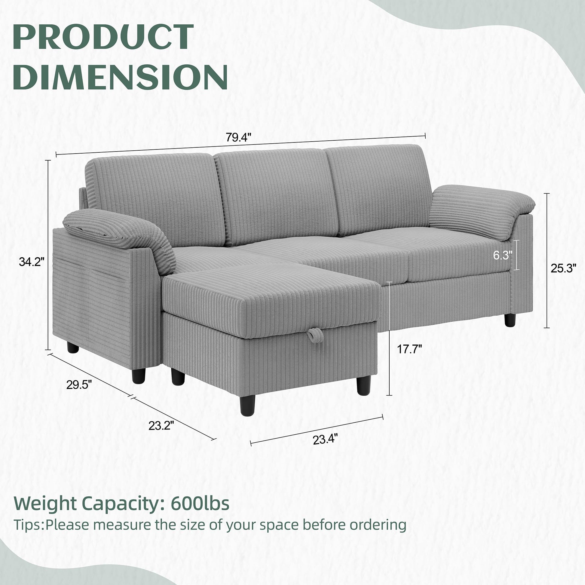 - Comfortable Design: Modern soft corduroy fabric with hardwood frame structure provides exceptional comfort and durability