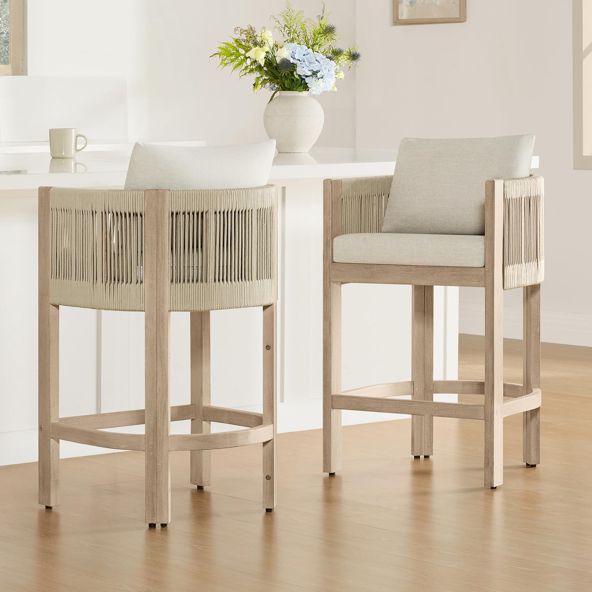 Elevate your kitchen island or home bar with these modern counter height barstools. Featuring a sophisticated cord braid design with fabric upholstered woven rope construction, these stools combine contemporary style with exceptional comfort.