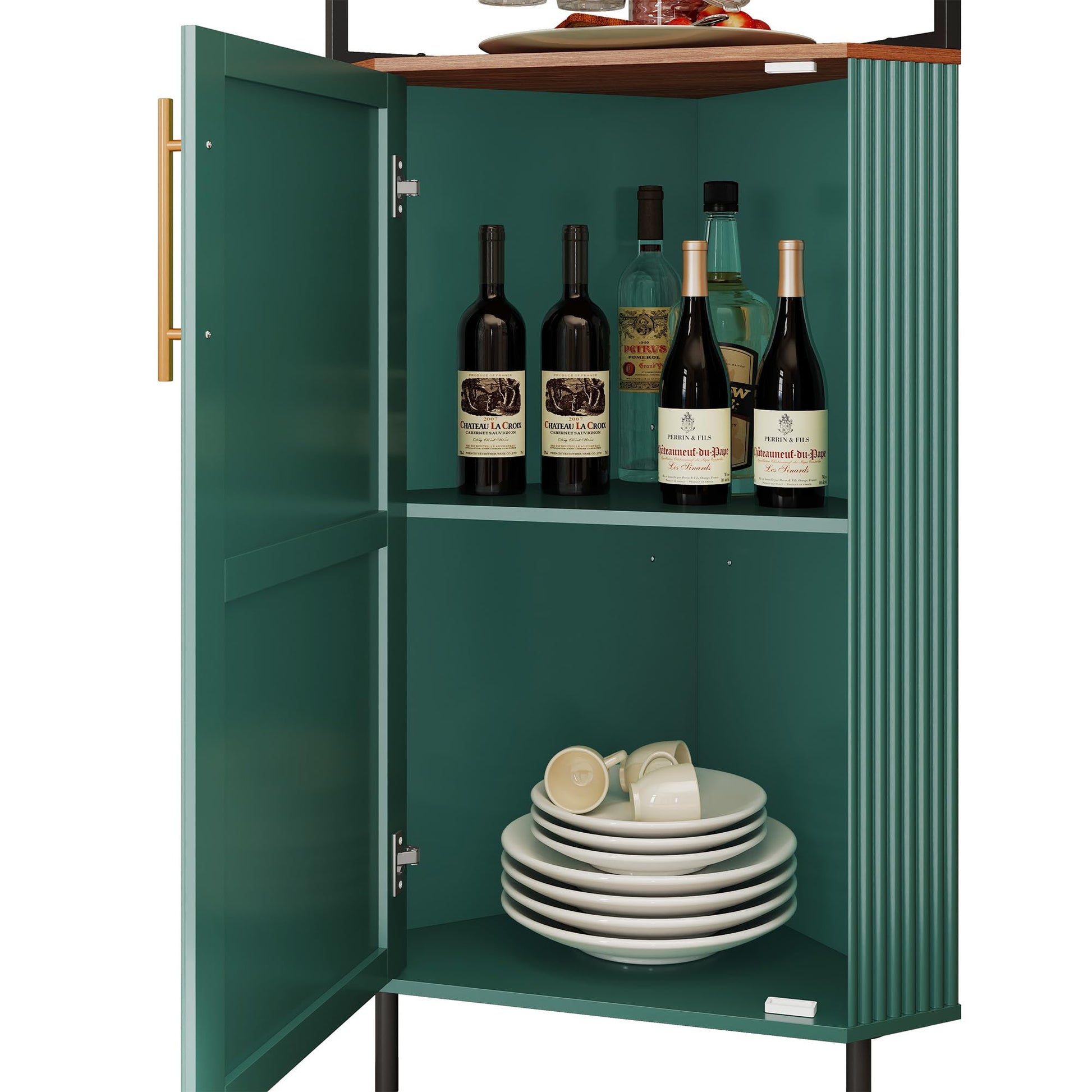 - 4-Tier Organized Storage: Open top shelf with guardrail, built-in glass rack, and partitioned lower cabinet keep bar essentials neatly organized
