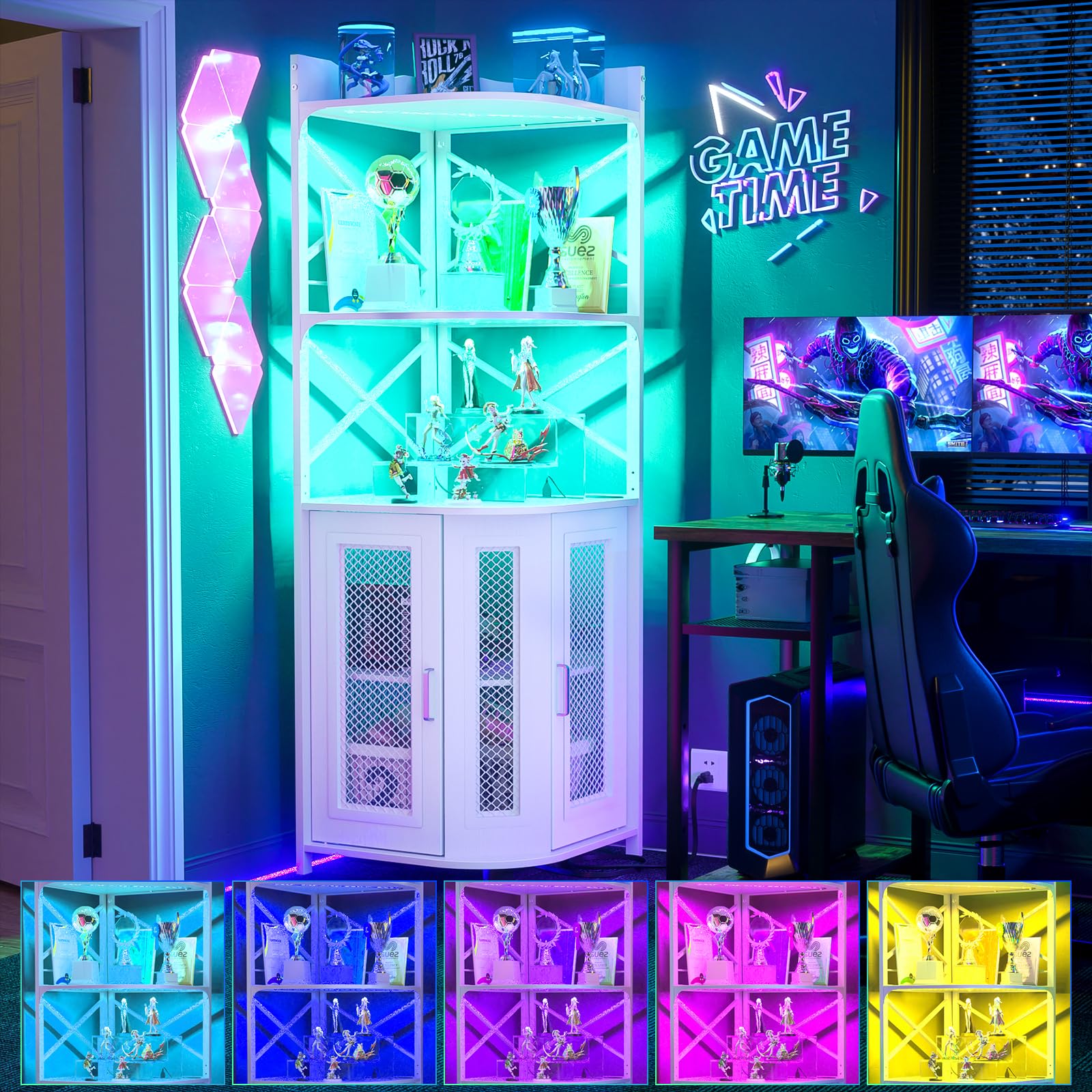 - Space-Saving Design: Corner configuration maximizes unused space while providing 5 tiers of storage and display area.