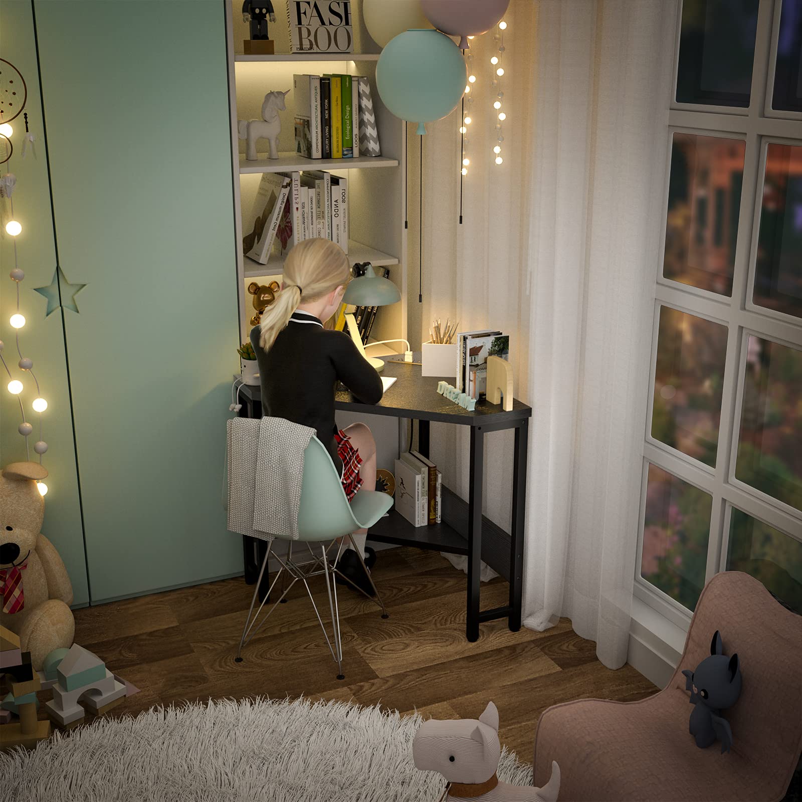 Designed to fit neatly into bedroom corners, living rooms, or home offices, this compact table maximizes unused corner space. The under-desk triangular storage shelf provides space for a mini printer, books, documents, or décor, making it ideal for small spaces.