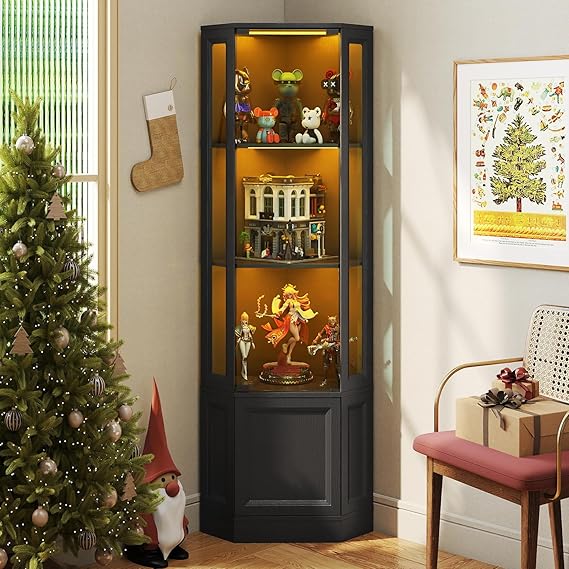 Corner Display Cabinet with LED Lights
