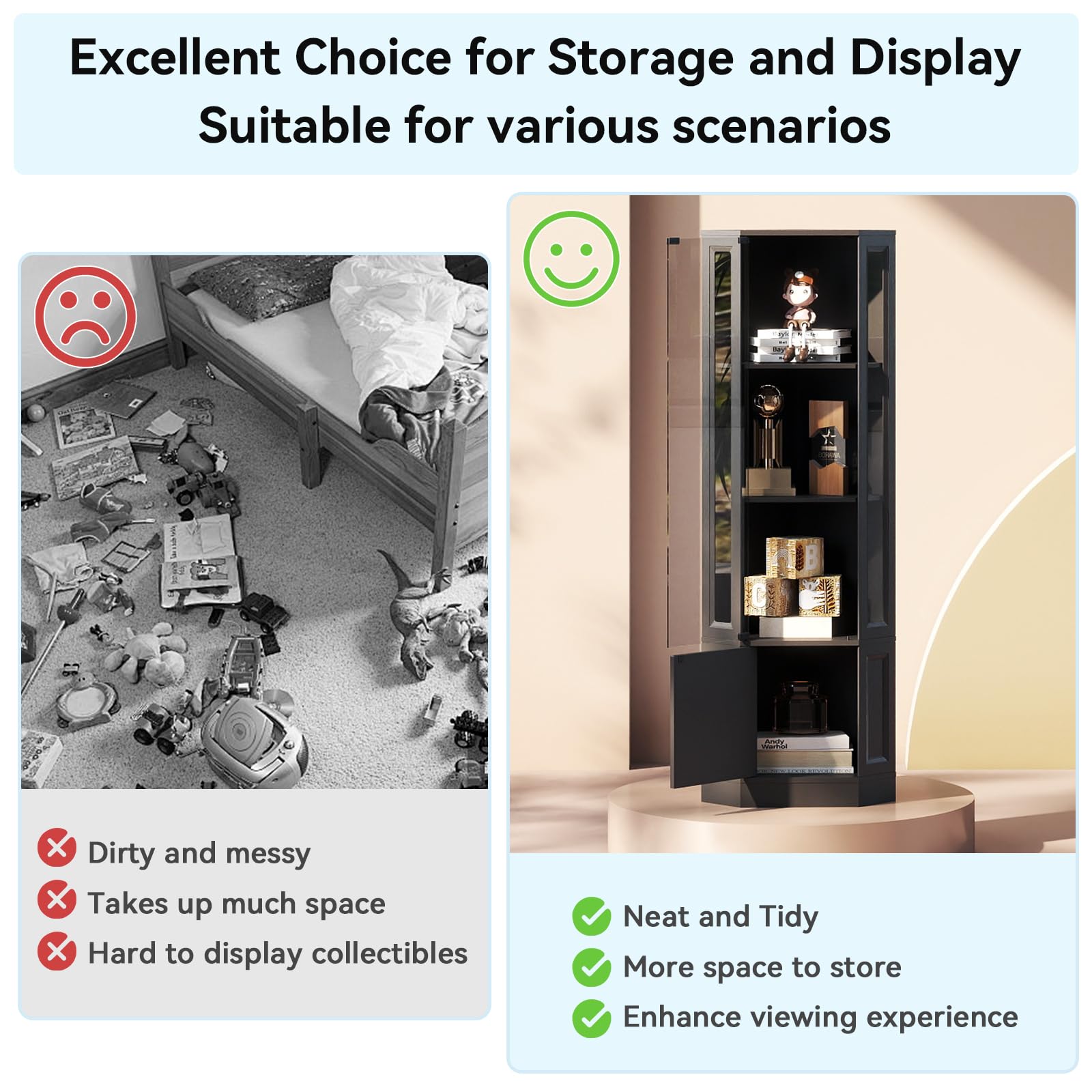 - Versatile Applications: Functions as display cabinet, wine cabinet, trophy case, or curio cabinet. Ideal for living rooms, bedrooms, gaming rooms, and home offices.