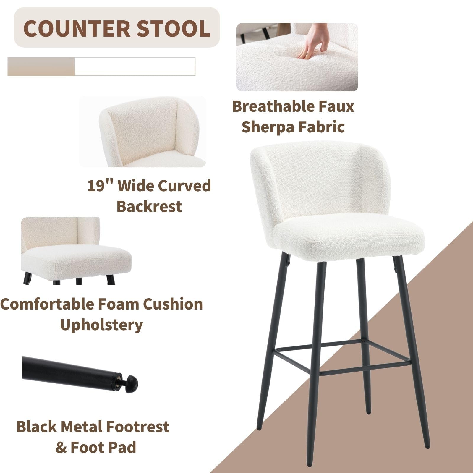 Counter Height Bar Stools Set of 2 - Sherpa Boucle Upholstered with Back