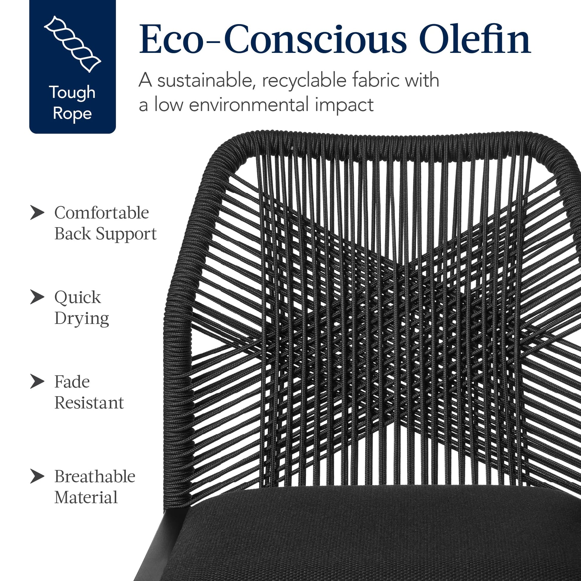- Weather-resistant olefin material woven in unique "X" pattern backrest