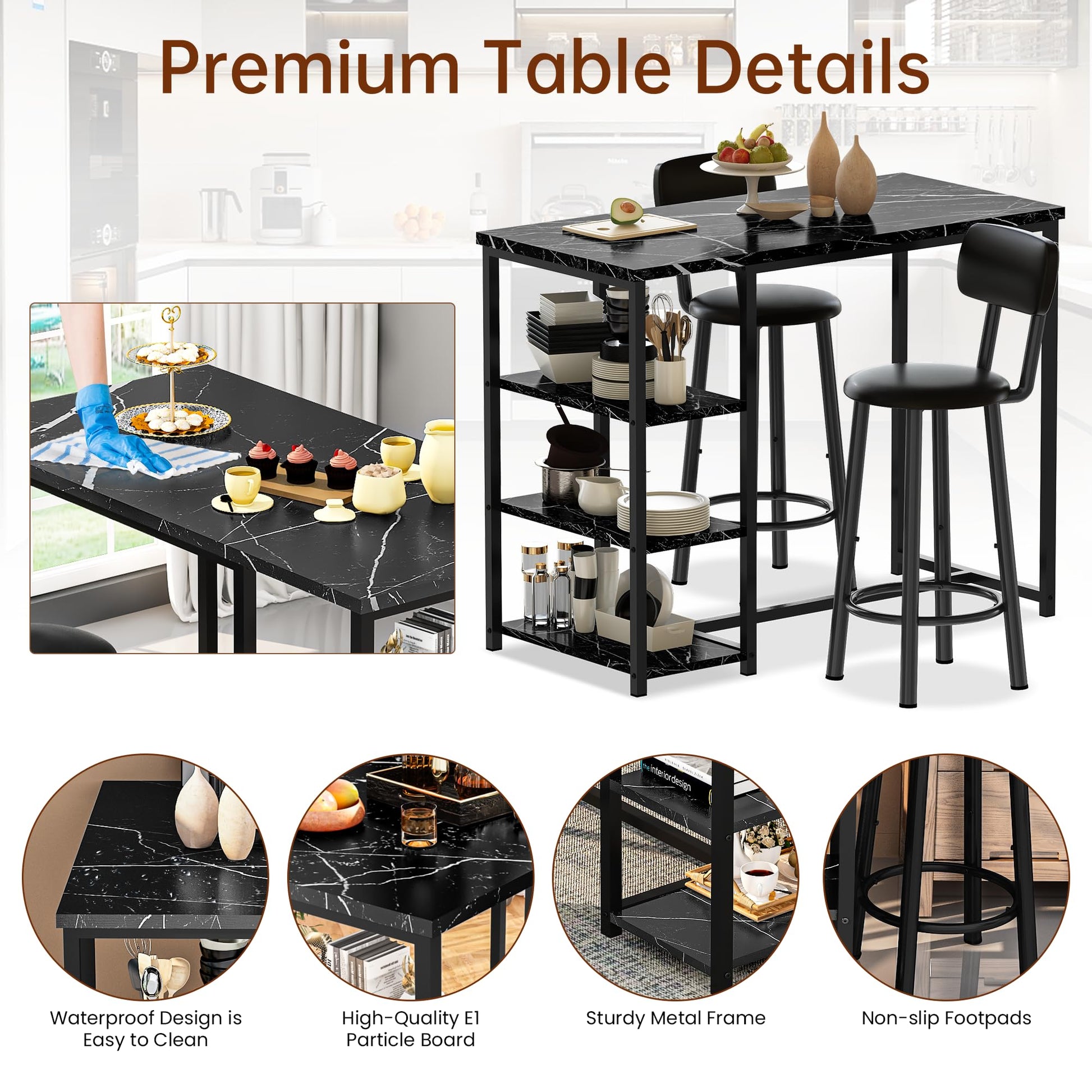 This modern counter height bar table set combines functionality with contemporary design, perfect for small spaces and versatile use throughout your home. The set includes one rectangular high top table and two comfortable bar stools with widened backrests.