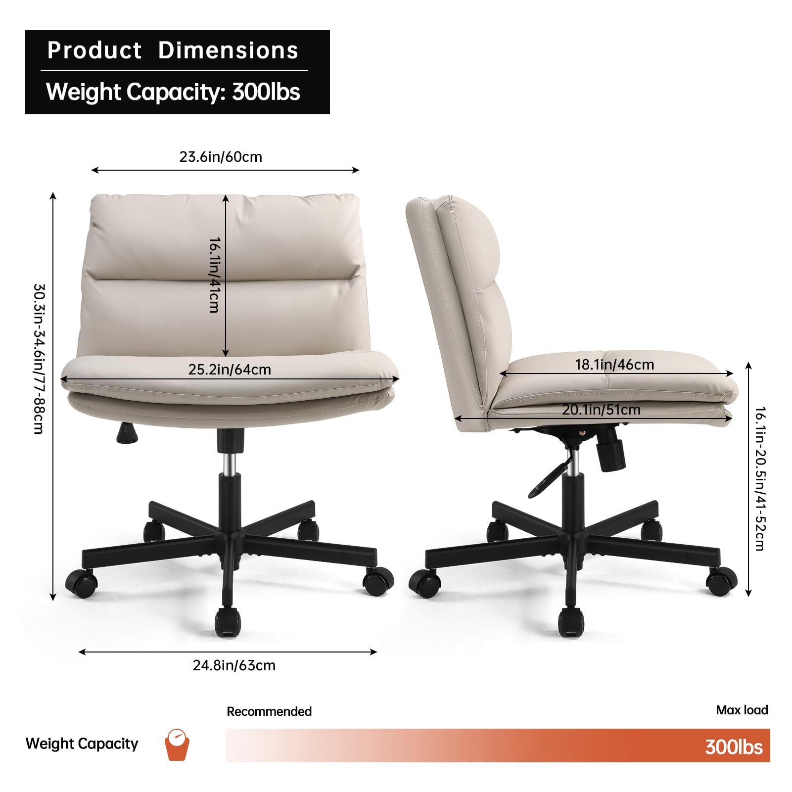 This armless desk chair is perfect for offices, home workspaces, gaming setups, and dining areas. The minimalist design saves space while maintaining sturdiness and style. Premium PU leather covering with BIFMA and SGS certified gas lever ensures durability and elegance.