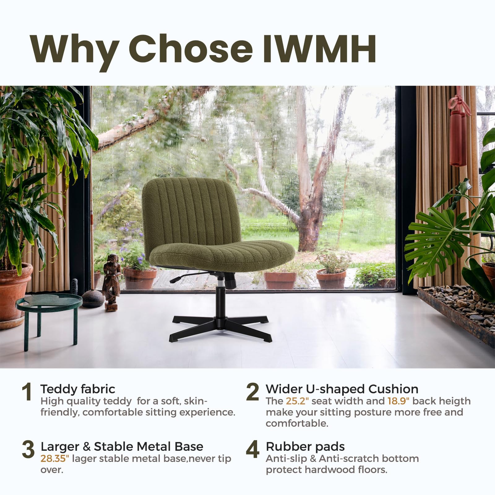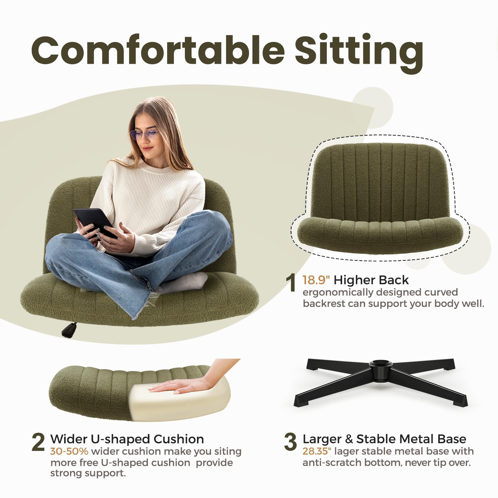 Experience ultimate comfort and style with this velvet armless office chair, designed for cross-legged sitting. The wide seat and adjustable height feature make it perfect for home offices, bedrooms, and workspaces.