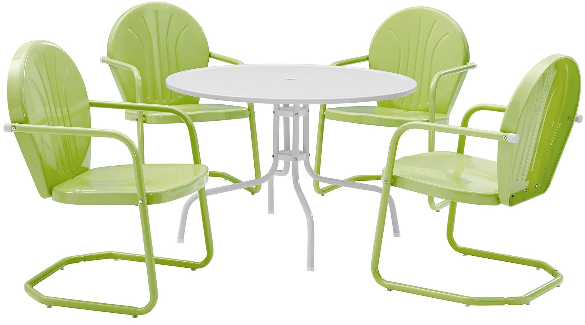 Crosley Furniture Griffith 5-Piece Outdoor Dining Set for 4, Retro Metal Round Patio Table and Chairs, White and Key Lime