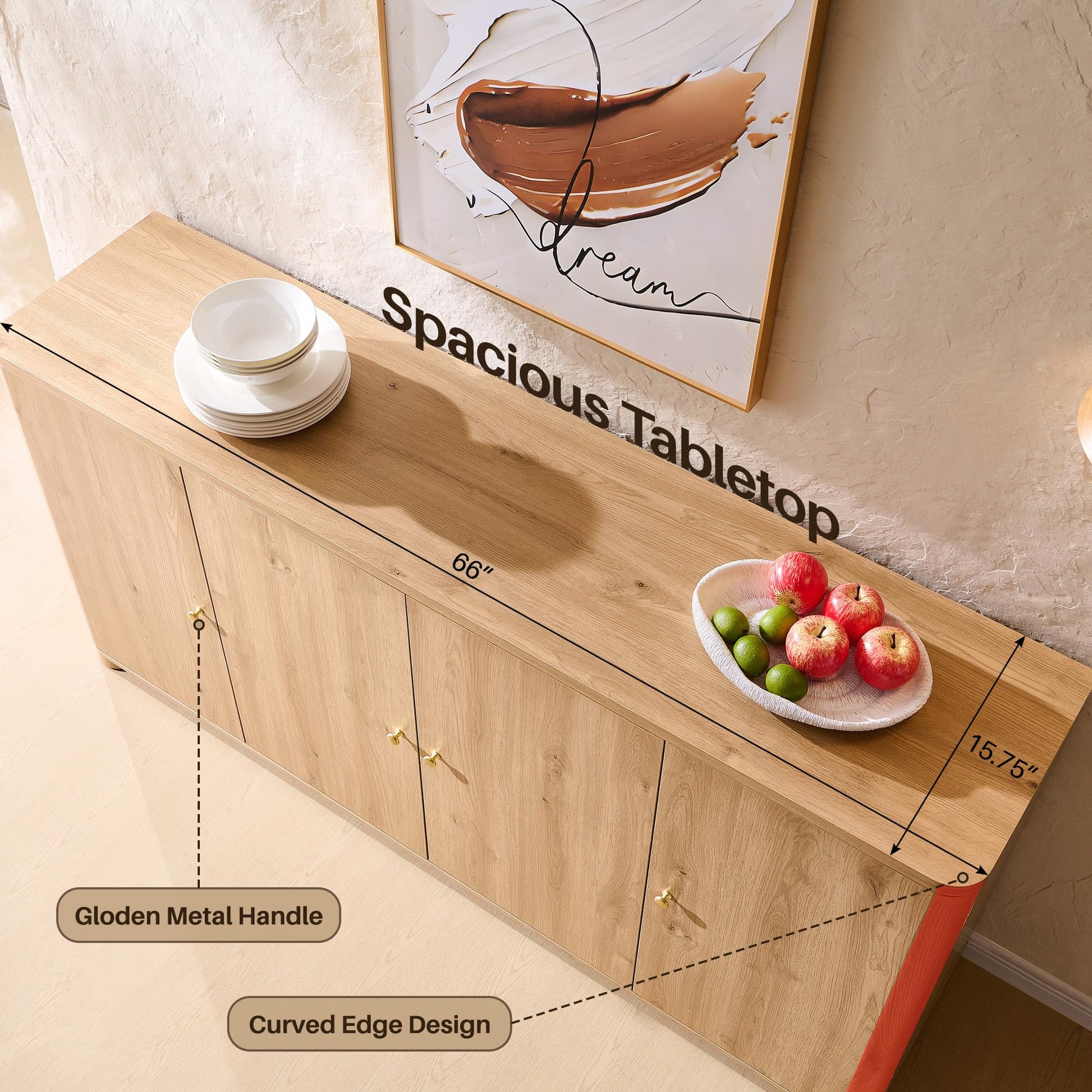 This modern buffet sideboard cabinet combines curved edge design with clean lines, offering versatile storage for your kitchen, dining room, or living room. With spacious dimensions and durable construction, it seamlessly stores pantry goods, dishes, or small appliances while enhancing your space with sophisticated style.