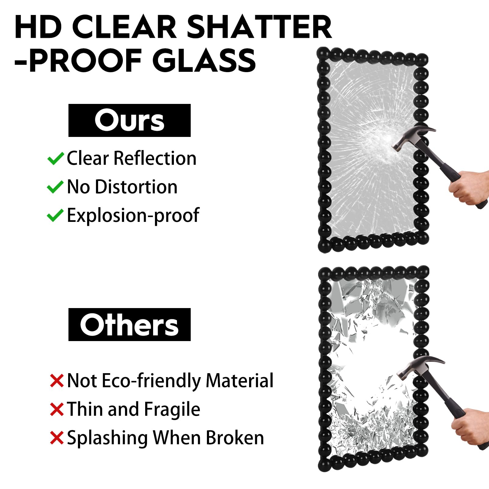 - High-quality, distortion-free glass for clear, crisp reflection