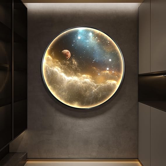 - 2D artwork with soft LED lighting and moon-inspired surface design