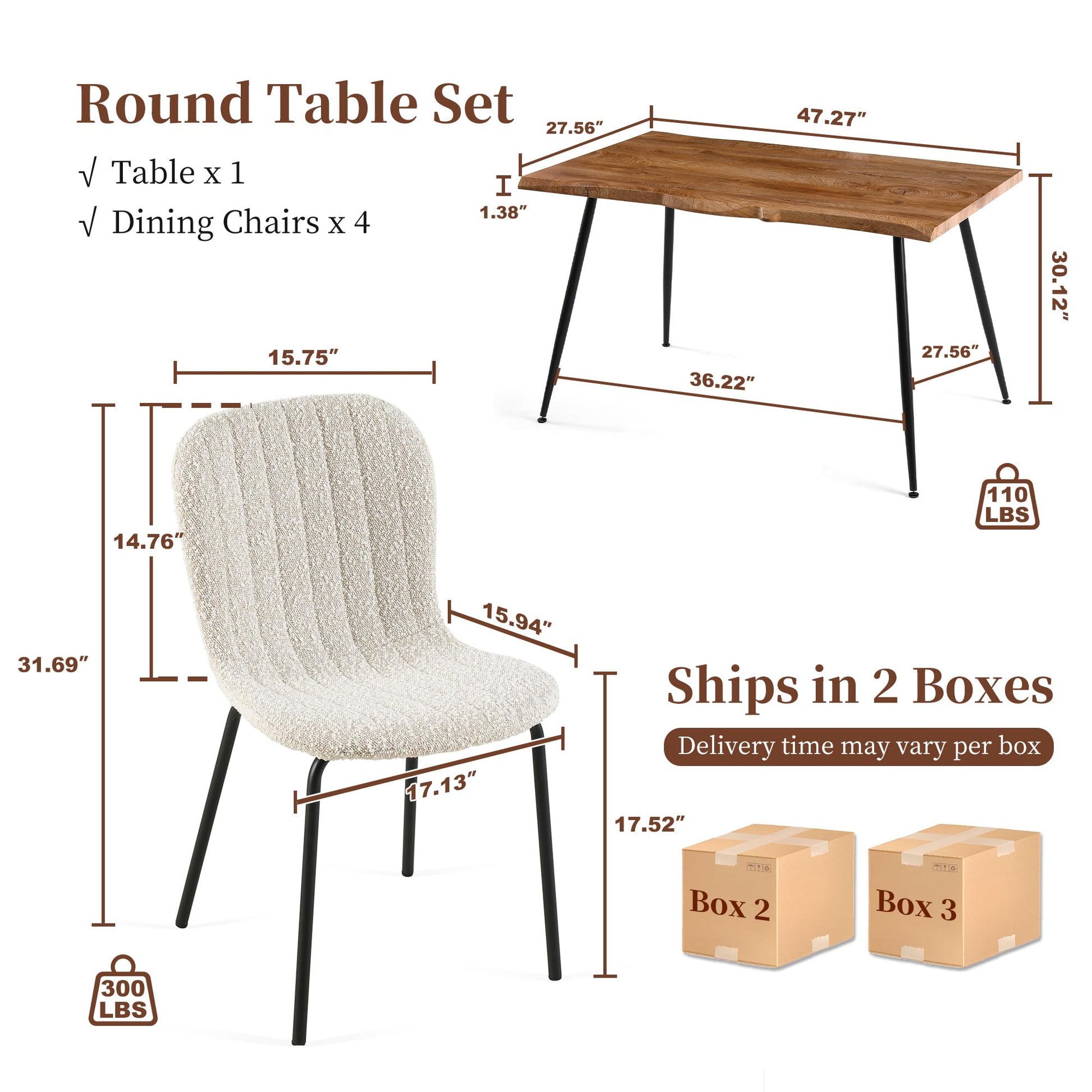 Dining Table Set for 4 with White Boucle Chairs