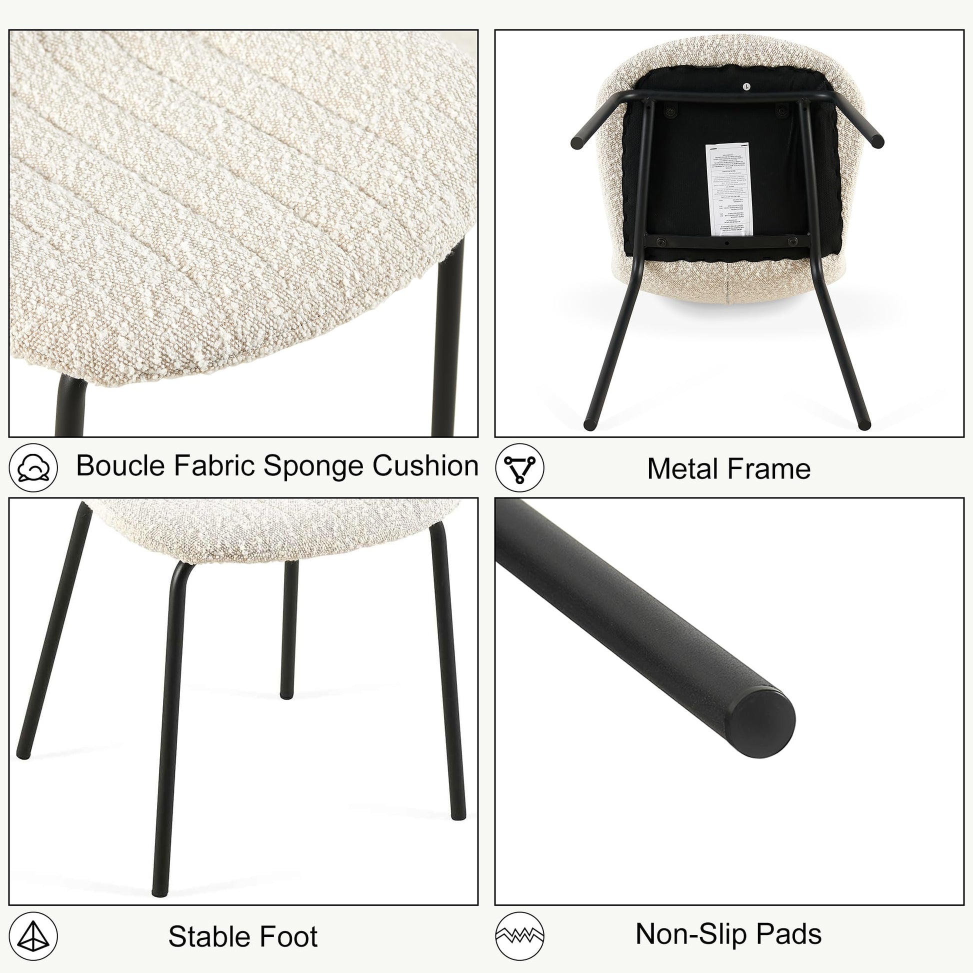 | Material | Boucle fabric chairs |